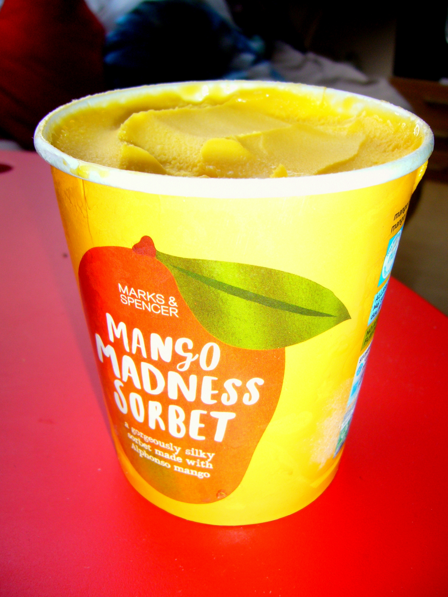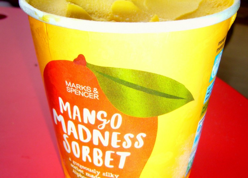 Když jsem zjistila, že Marks&Spencer začal prodávat mangový sorbet, nemohla jsem prostě odolat, a ještě před odjezdem jsem jej vyzkoušela. Zvláště po návštěva Angelata jsem byla velmi netrpělivá, kdy mě zase chuť čerstvého manga zašimrá na jazyku. V prodejnách M&S nabízí 500 ml balení za 99,90 Kč, což je na mango sorbet příjemná cena (ve srovnání s D-H či bio mango sorbetem z Bio Dejvická).