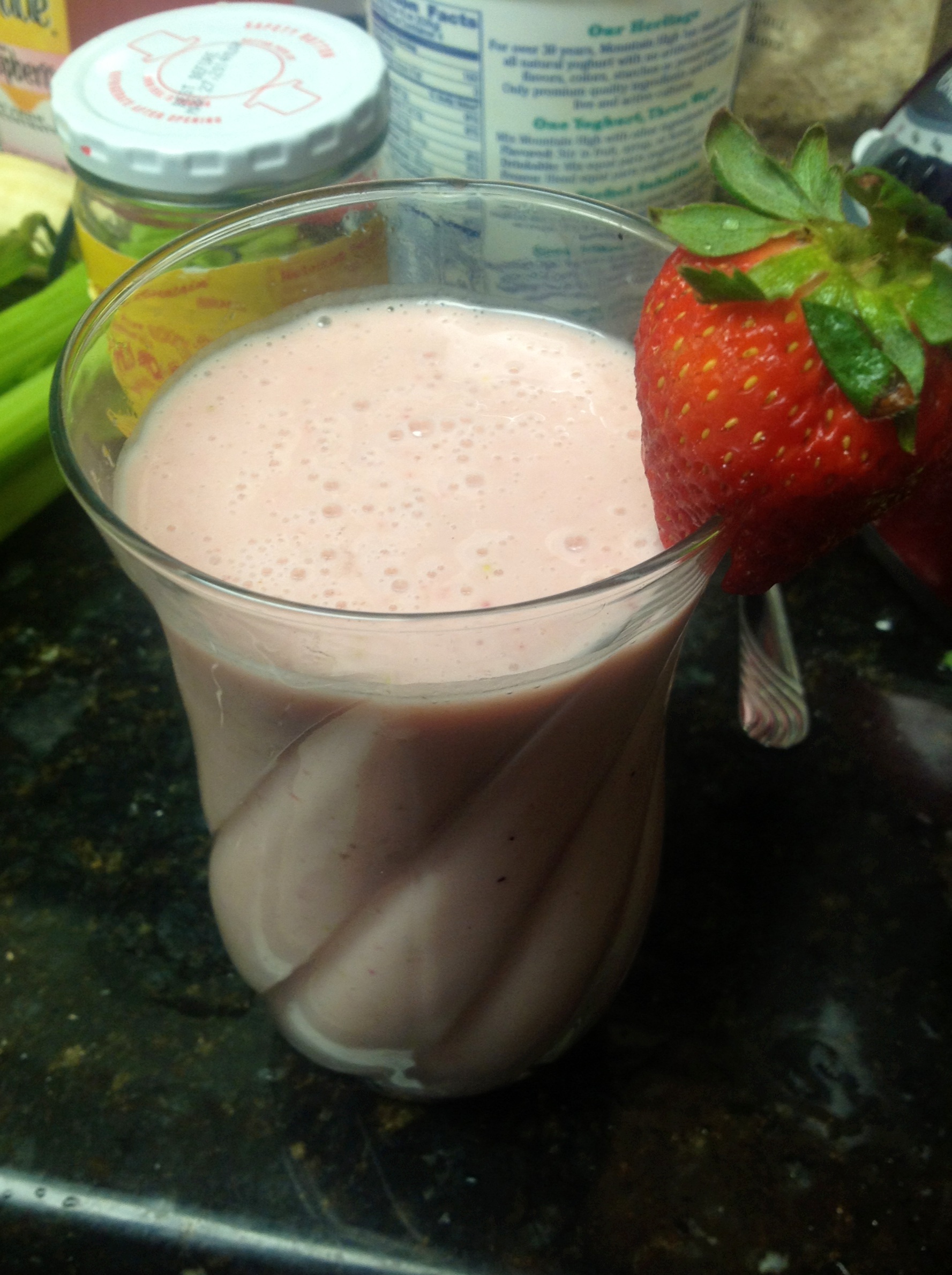 Mimochodem k mé velké radosti první test s jahodami dopadl výborně. Po 9 měsících diety a odříkání jsem zakoupila čerstvé jahody. Byly mega velké a do jednoho smoothie jsem jich použila 5-6. Samozřejmě chápu, že každý má jiný limit a pokud se jahody bojíte testovat (nebo máte alergii), nahraďte je půlkou manga (které se může i při HIT). Pořád budete mít lahodné smoothie na cestu.