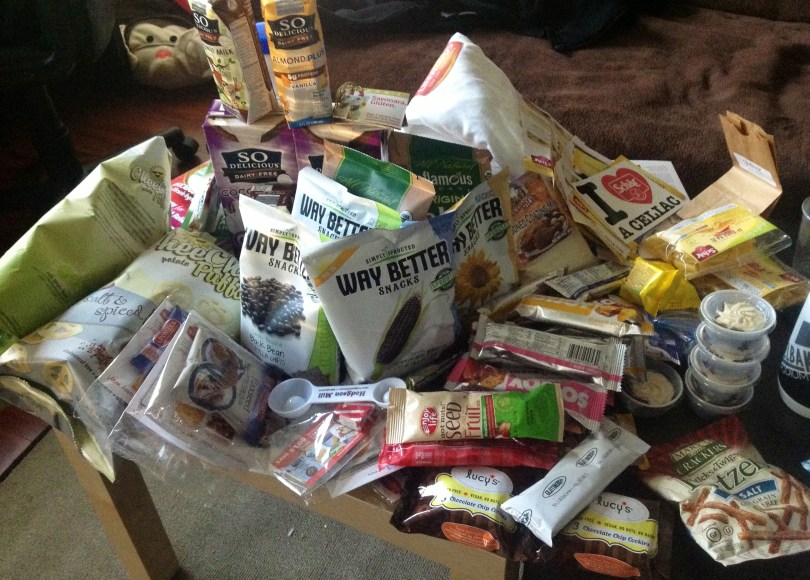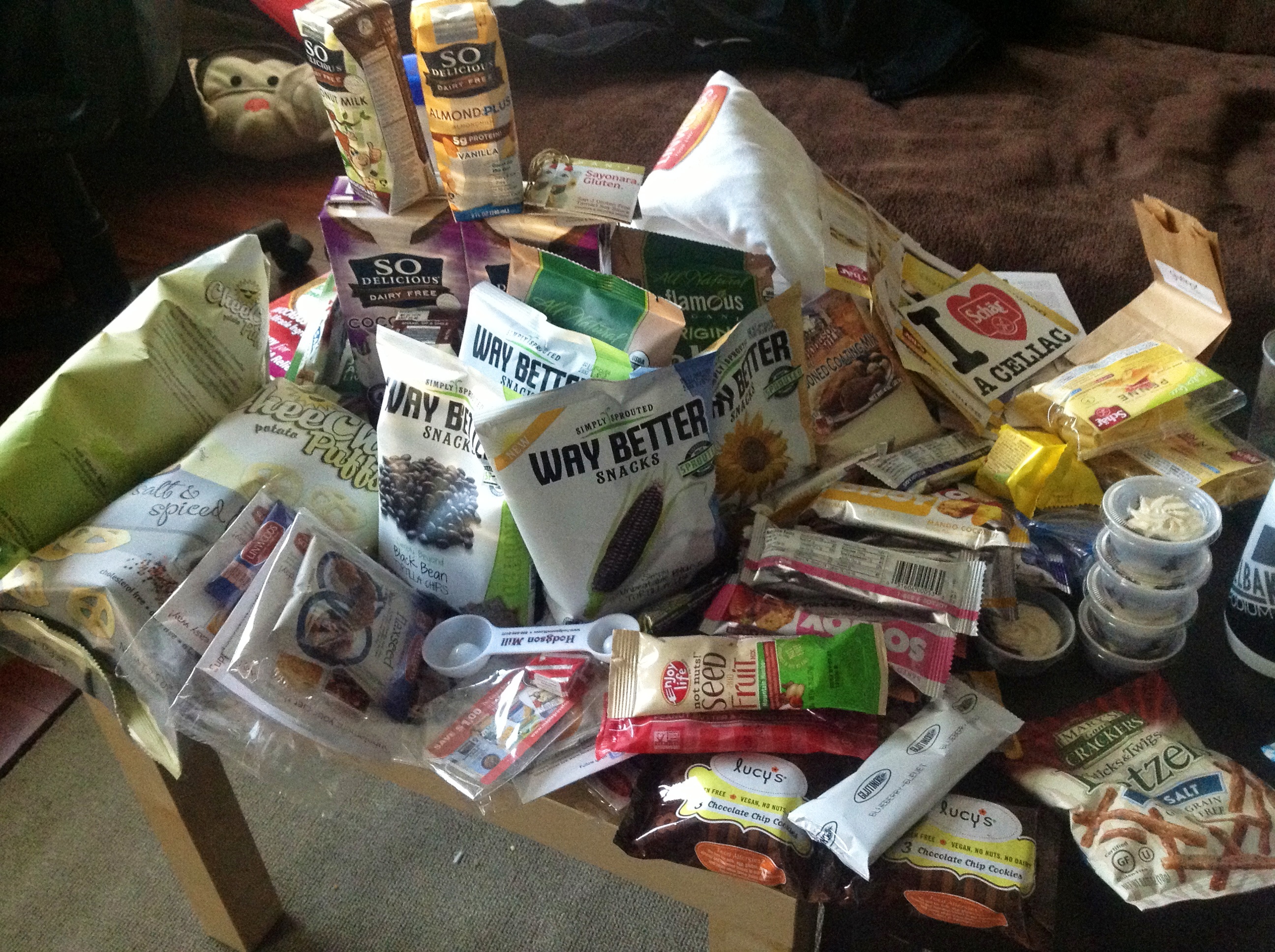 „Právě jsem se vrátila z Hradu“…no dobře, možná jsem na žádném hradě nebyla, ale přesně tak pohádkově jsem se cítila, když jsme se vrátili z Gluten&Allergen free Expo 2013, které se konalo na menším letišti poblíž San Francisca. A ráda se o tom zmíním zrovna dnes, na Fat Tuesday (=Mardi Gras, v překladu Tlusté úterý, což je dle křesťanských svátků poslední den, kdy se můžete nacpat, než začne půst). V ČR jsem na několika Expo byla, ať už se to týkalo fitness, jídla či krásy, ale proti tomuhle to byla úplná žabařina. Nejenom, že jsem se za cenu lístku najedla na místě, ještě jsem si domů donesla spoustu informací, jídla a třeba i kuchařku oblíbené holistické kuchařky Kathy Smart. Lístek na Expo stál $20 dolarů pro normální vstup po 10. hodině ráno (ranní ptáčata si musela trochu připlatit). Nečekaný výdaj byl platba parkovného, jelikož se Expo konalo v hotel Marriott, což pro nás znamenalo dalších $11.50 za necelých 6 hodin (vydřiduši!). SAM_0032Hned po vstupu jsme dostali pevné tašky, kde byl program a plán výstavy, ale také nějaké gluten-free Falafel chipsy. Že budeme tašku potřebovat na spoustu vzorečků jsem pochopila velmi rychle.IMG_0908