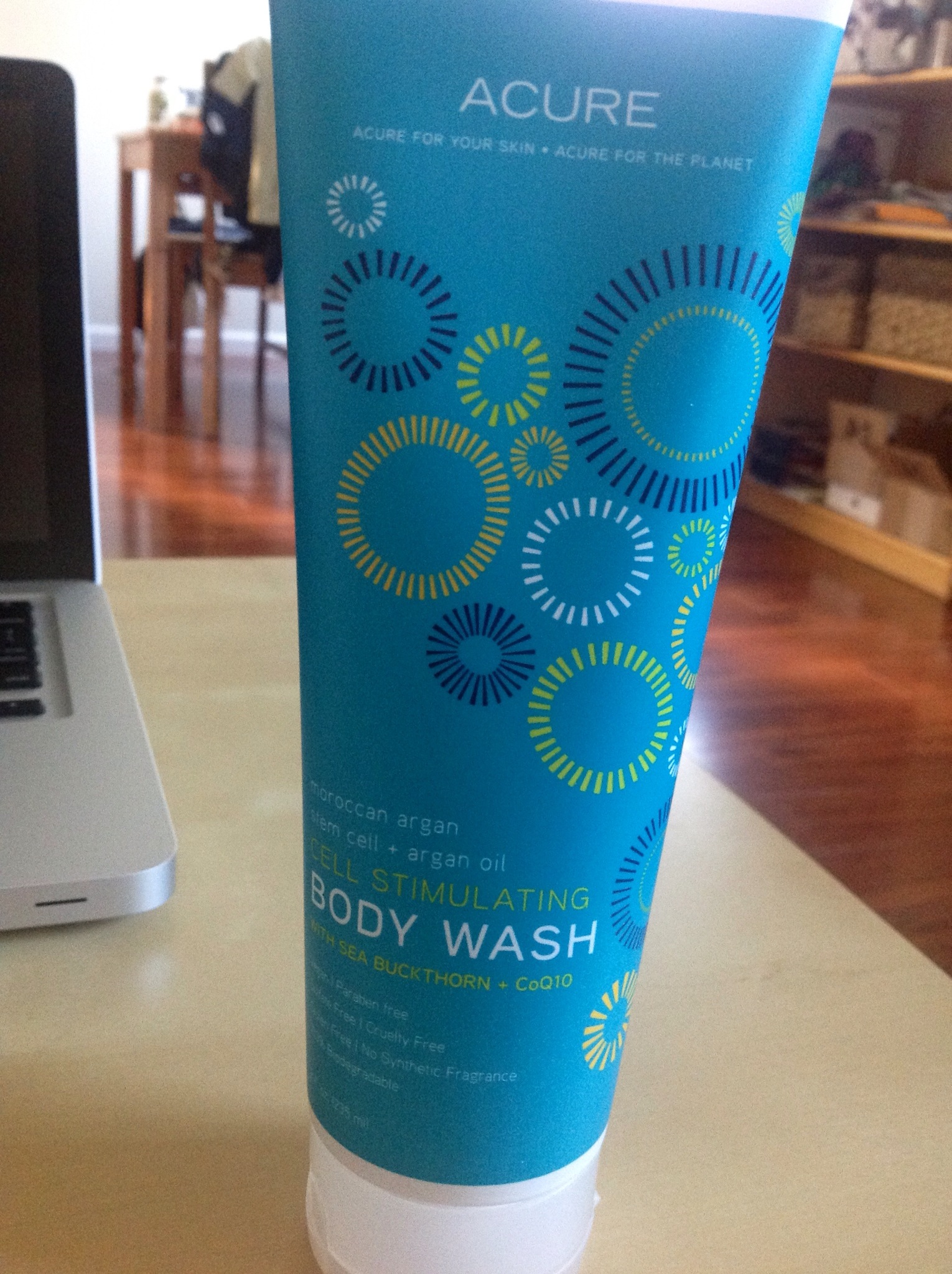 P1010750Já jsem měla štěstí a na první oslavě jsem dostala speciální jídlo – gluten-free, žádná rajčata ani ryby (neměla jsme však sílu říci, že mandarinka v salátu je též špatně). Musím říct, že jsem přežila jen s menší křečí, ale vzhledem k tomu, že oslavy dále pokračovaly, nebyl čas se tím zabývat. Ráda bych se s vámi podělila o svůj malý dáreček, a to v podobě přírodního sprchového gelu firmy Acure. Již předtím jsem vyzkoušela jejich zpevňující tělové mléko s citrónovou trávou, které mi velmi sedlo,  a ze sprchového gelu jsem měla ještě větší radost. Gel je bez příměsí, chemikálií (tedy i bez benzoátů, parabenů, carrageenanu či glutenu, bez sulfátů i umělých aromat), krásně voní a – velmi důležité – nemám po něm zatím žádnou vyrážku či negativní reakci. IMG_1063 (2)