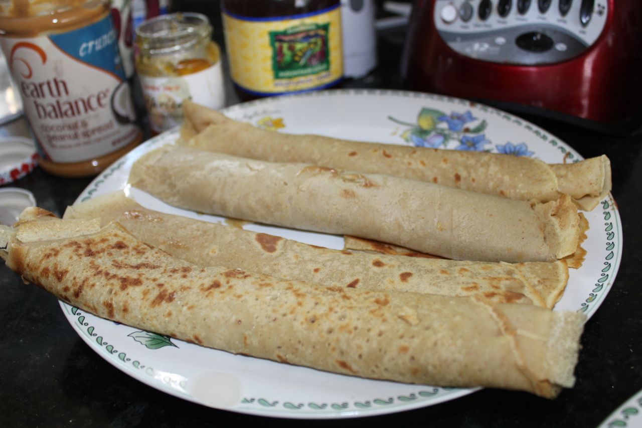 IMG_3962A když jsem tak přemýšlela o palačinkách, nakonec jsem si umíchala jednoduchý recept. Těsto máte smíchané jedna dvě, na nic nečekáte, rovnou smažíte. Dle přípravy těsta se řiďte svým instinktem a přilévejte mandlové mléko jen postupně, než vám vznikne konzistence klasického palačinkového těsta. Přiředit si můžete vždy, i když mouku můžete vždy dosypat také. Dělala jsem recept pro tři strávníky (proto také tři vejce, aby na každého zbylo dost proteinu!), ale vždy záleží na vašem apetitu (znám lidi, kteřá by celou dávku slupli jako malinu). Ozdobit už můžete dle vlastní fantazie (a když potřete třeba čokoládou, máte ihned zákusek pro návštěvy!)