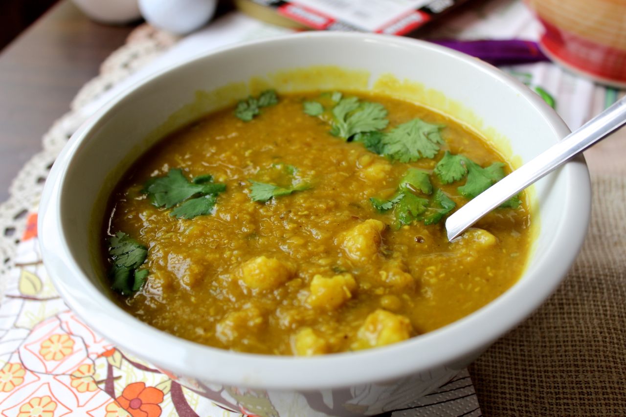 Kokosovo-čočkové karí s květákem