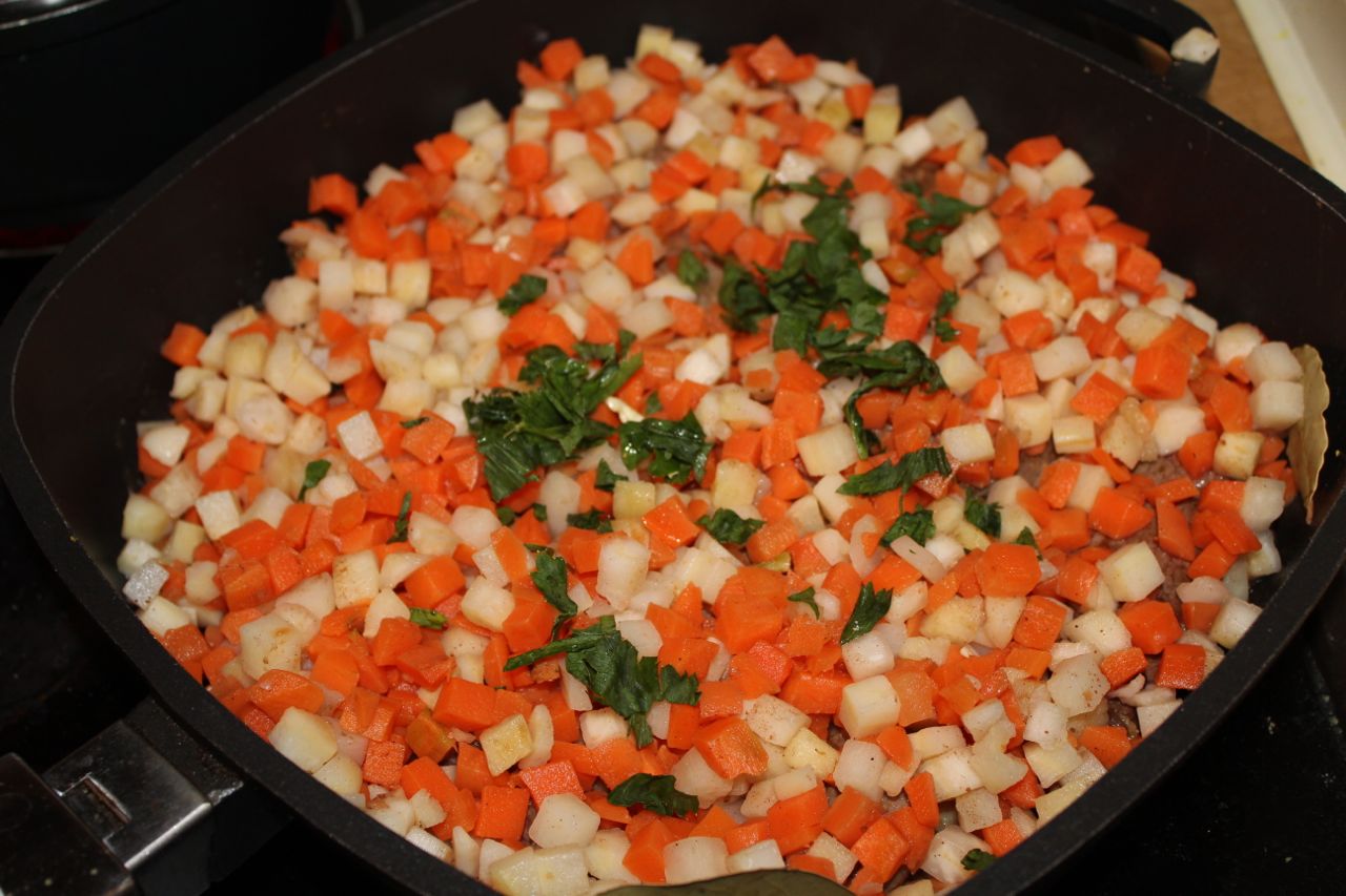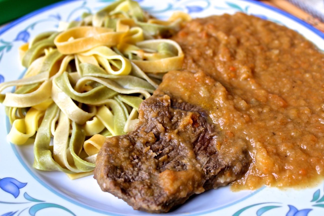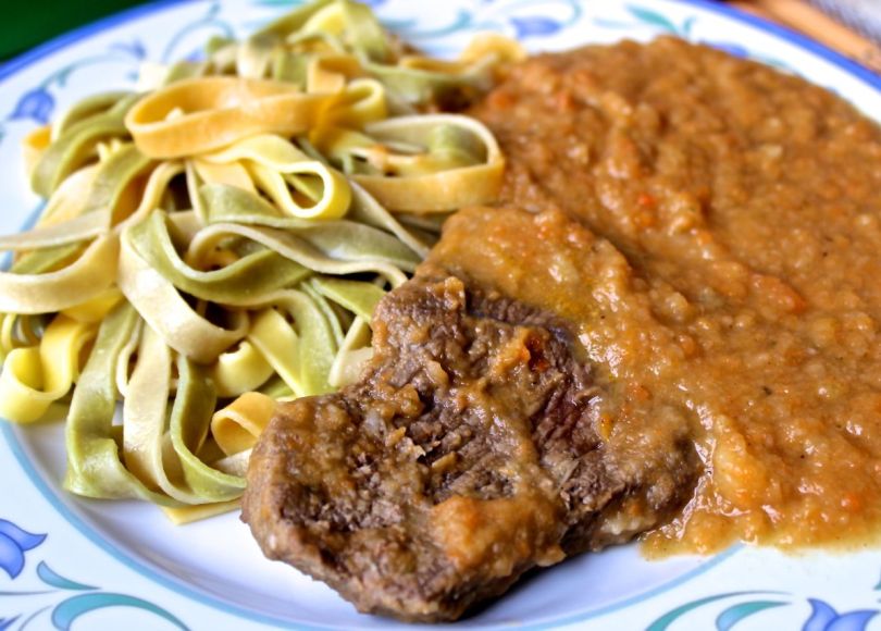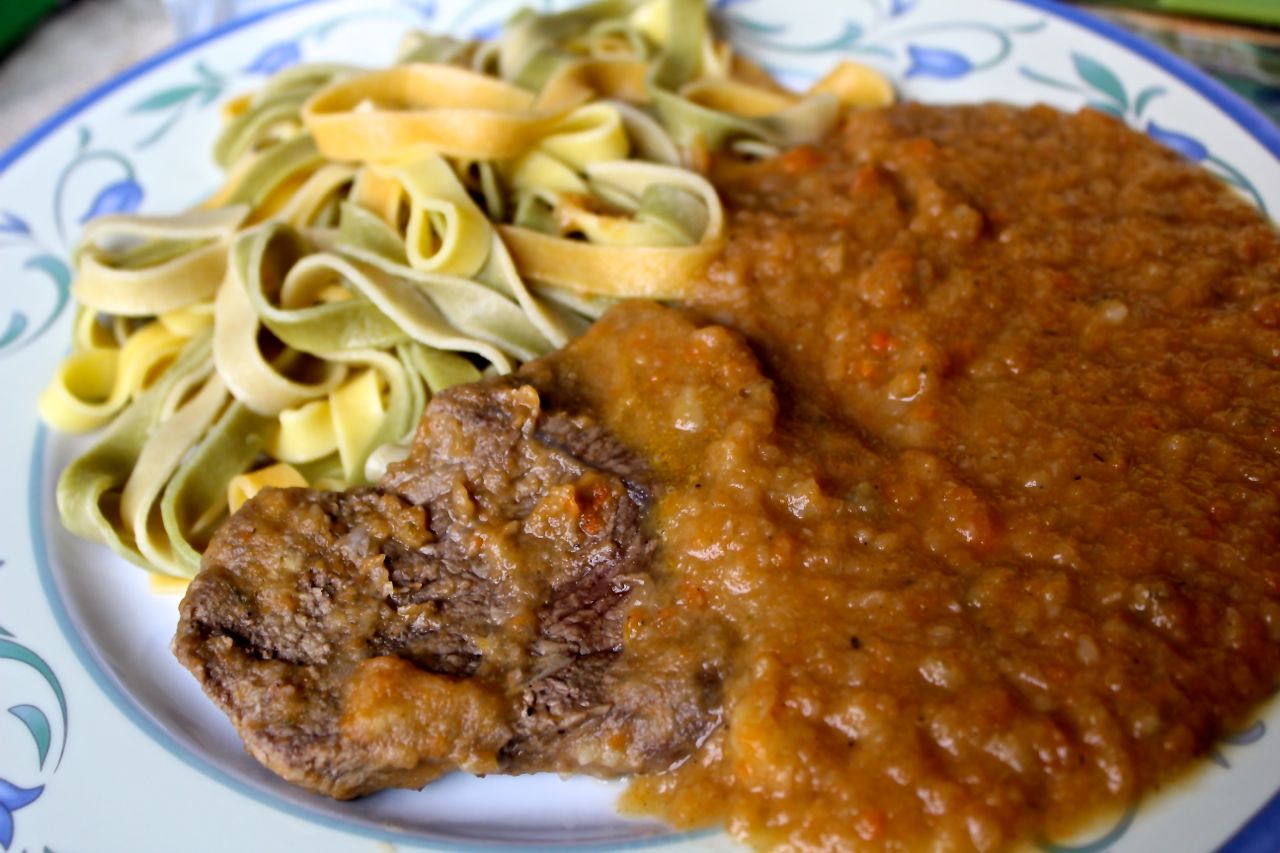 Už by bylo na čase pozřít zase nějaké to maso (jednou za čas přijde kvalitní kousek hovězího vhod kvůli železu a vitamínu B12). A tak jsem prostě ukuchtila ze zeleninu svíčkovou, která sice úplně jako svíčková nechutnala, ale za to vařená zelenina dodá potřebnou vlákninu, aby se tělo mohlo masa pěkně zbavit. Podávat můžete klidně s knedlíkem či rýží, ale proč netradičně nezkusit třeba domácí italské těstoviny (nebo nějaké bezlepkové). Ráda bych varovala lidumilce, že tento produkt byl testován na lidech!