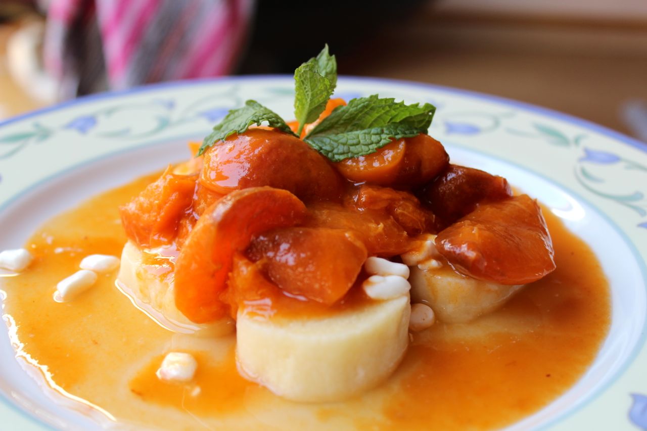 Mouku jsem prosála do misky, přidala tvaroh a vejce a vymíchala v pevné těsto. Těsto jsem pak vytvarovala do dvou válečků a dala vařit do vroucí vody na 10 minut. Knedlíky rozkrájíme po uvaření na plátky, naservírujeme na talíř, posypeme cottage sýrem (nechte předem okapat přebytečnou vodu) a ozdobíme rozvařenými meruňkami. Doporučuji ozdobit mátou, skvěle jídlo doladí. Dobrou chuť.
