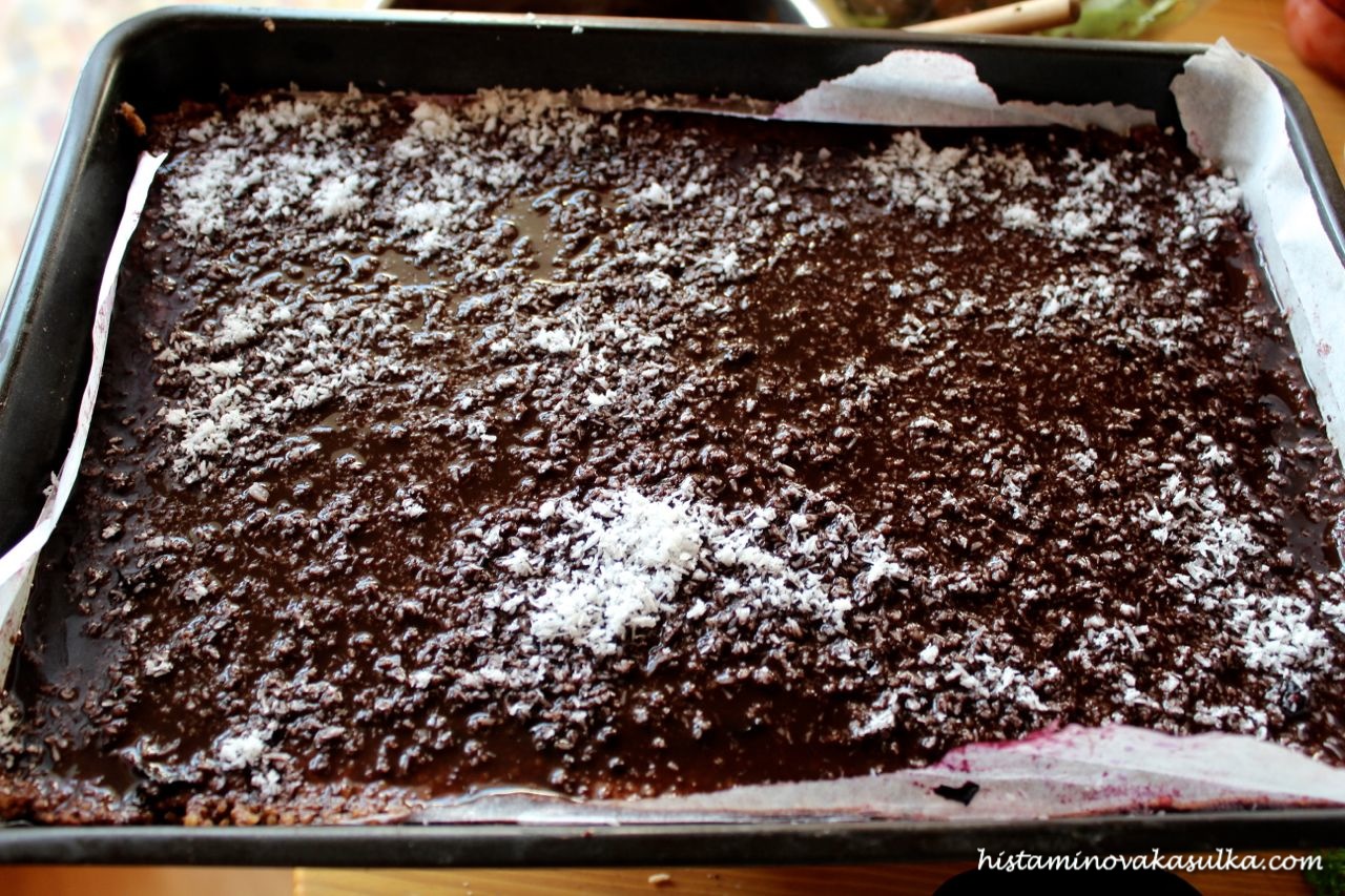 Nechte zatuhnout. Poté si připravte karobovou/kakaovou polevu, já jsem na závěr posypala ještě oblíbeným kokosem.