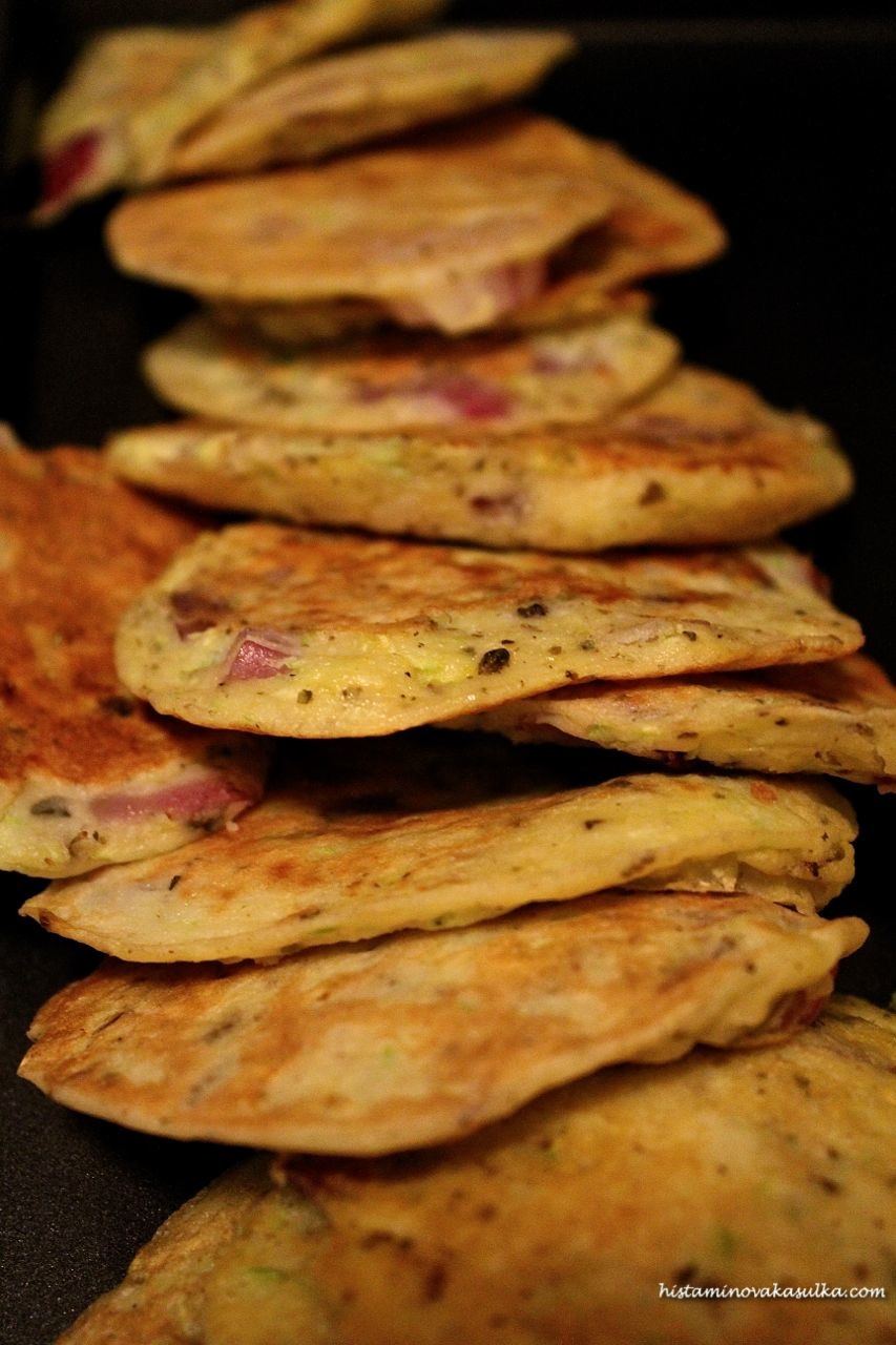Lžící pak nabíráme a smažíme na nepřilnavé pánvici (smažila jsem na sucho) na mírnějším plameni, cca 4-5 minut z každé strany (aby se vejce dobře prosmažilo). Podáváme ideálně na rukole:) Dobrou chuť
