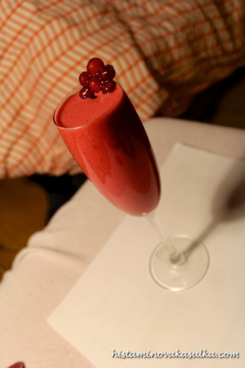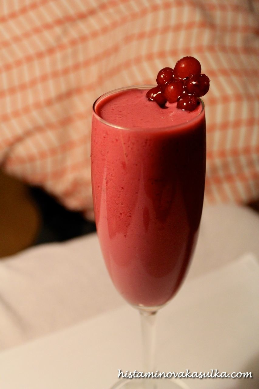 - 1/2 hrnku červeného rybízu, ideálně mraženého (či čerstvého s přidáním pár kostek ledu)