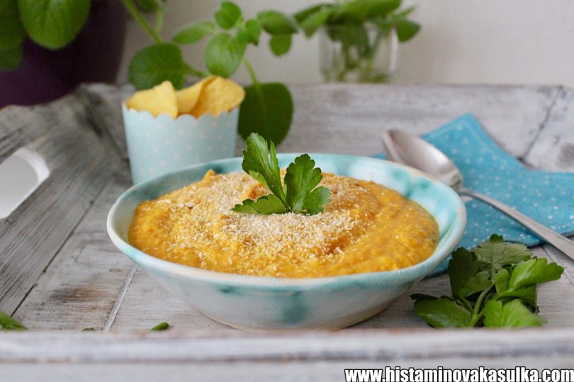 Mrkvička je super zdravá věc. A úplně nejlepší je, že když ji pořádně nahusto rozmixujete, nemusíte polévku nijak zahušťovat, ale i tak dostanete krém, který vás zasytí. Jelikož jsem fanoušek zvláštních kombinací a ještě větší fanoušek kokosu (který je protizánětlivý), spojila jsem mrkev s kokosovým mlékem a strouhaným kokosem. A hurááá, krémová chuťově velmi zajímavá polévka je na světě. Když před podáváním posypete trochou opraženého kokosu a zavřete oči, ucítíte tu exotiku na vlastní kůži:).