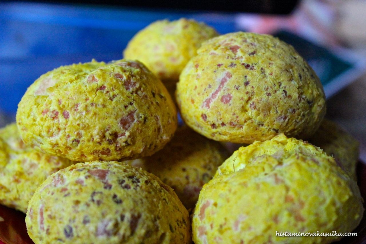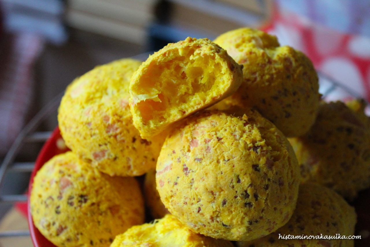 Vejce lehce rozšleháme a postupně k nim přidáváme jednotlivé suroviny. Opatrně mícháme, maniokový škrob má tendenci trochu lítat. Vypracujeme husté těsto, které necháme půl hodiny odležet v lednici. Já jsem použila 1 hrnek čerstvého balkánského sýru a 1 hrnek strouhaného tvarohu, volba sýru je však na vás, co kdo toleruje (naprosto ideální a luxusní je strouhaná mozzarela). Ze směsi pak lehce naolejovanýma rukama tvarujeme menší kuličky, které dáma na plech. Pečeme cca 15-20 minut, záleží na troubě. Opět doporučuji ochutnat ještě teplé! Dobrou chuť.