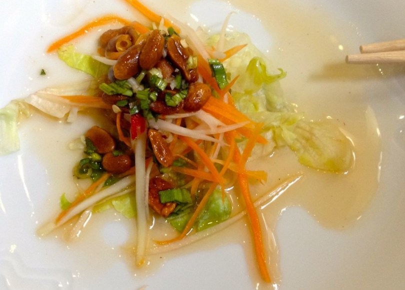 Velkým překvapením bylo vystoupení samotného kuchaře, který nám představil novinku, a to využití českých surovin v thajské kuchyni. Rozdali nám všem hůlky (do té doby vás nechají jíst příborem). Představil nám pstruha se salátem z mrkve a thajské papayi s lehce pikantní arašídovou omáčkou. Musím uznat, že to bylo vážně moc dobré, zajímavá kombinace surovin a sladkopikantní chuti.