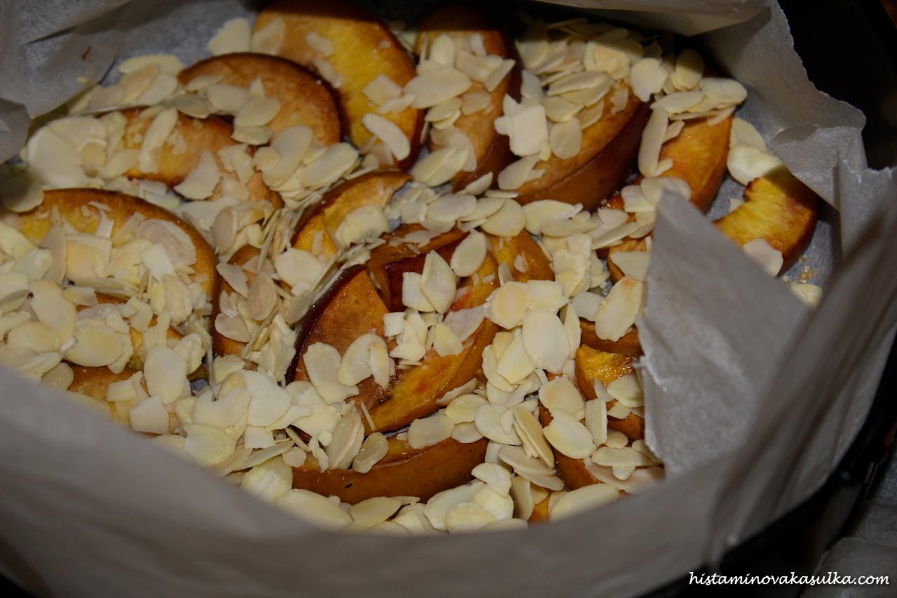 Nektarinky omyjte a nakrájejte na středně silné plátky (rozčtvrťe, vyjměte zbytky středu a rozkrajte na plátky). Plátky naskládejte do formy, lehce poprašte třtinovým cukrem a vložte na 15 minut péct do trouby. Poté vyjměte, posypte mandlemi a skořicí a zapečte dalších 5 minut. Vyjměte a nechte vychladnout.