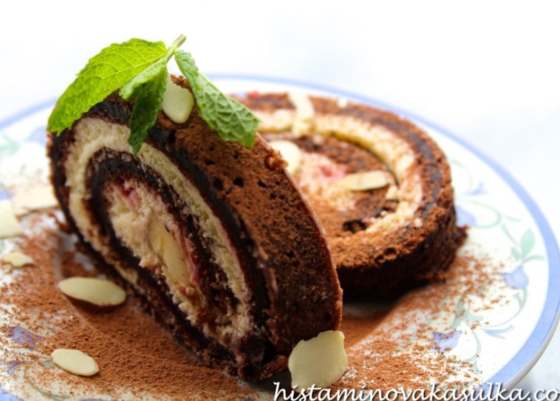 V míse utřeme žloutky s moučkovým cukrem a kakaem. Do hmoty pak opatrně zapracujeme vyšlehaný sníh (přidávala jsem špetku soli). Těsto rozetřeme rovnoměrně na plech a dáme péct do trouby na 8 minut. Po upečení je dobré sejmout z plechu, aby se těsto zespodu nedopékalo. Já přikrývám čistou utěrkou a těsto s utěrkou sroluji do rolády. Necháme vychladnout. Šlehačku s lžící škrobu vyšleháme do tuha. Po vychladnutí roládu rozbalíme, sejmeme utěrku a můžeme pokapat pár kapkami rumu, potřít domácí zavařeninou a šlehačkovým krémem. Srolujeme s tím, že pečící papír by se nám měl krásně odlepit. Dáme vychladit do lednice. Dobrou chuť.
