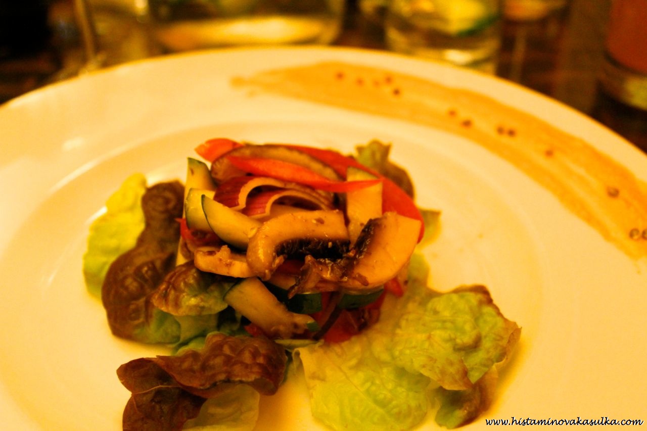 Dalším chodem bylo Fajitas, nakládaná zelenina v olivovém oleji s „čedar“ dipem. Musím říct, že tento chod mě nijak nezaujal, asi jako jediný.