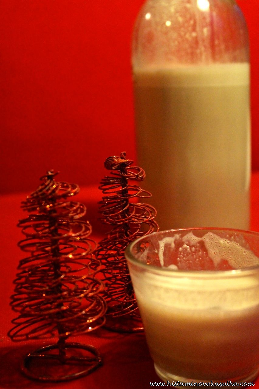 Oříškové mléko si připravíme dle návodu. Doporučuji dát tak 3/4 vody než dáváte běžně, aby vám vznikla hustá konzistence bez nutnosti přidávat pojidla. Vaječné žloutky si rozmícháme v misce společně s datlovým sirupem a vanilkou. Velmi pomaličku přimícháme půlku kokosové smetany. Musí to být smetana, žádné ředěné nebo nízkotučné mléko (o získání „smetany“ z plechovky tučného mléka jsem psala již dříve). V hrnci si smícháme oříškové mléko se zbylým kokosovým krémem, přivedeme k varu a za stálého míchání vlijeme vaječnou směs. Chvíli zahříváme, ideální je, aby směs byla stále před vřením (a zároveň nad 70°C), přidáme špetku koření dle vlatních chutí. Necháme vychladnout a přelijeme do skleněné láhve. V případě, že chcete alkoholovou verzi, přidejte po vychladnutí zvolené množství rumu (dle chuti). Já jsem přidávala rum a vše promixovala v mixéru, abych měla jistotu, že se všechny chutě krásně spojí (proto ta pěna:)). Uchovávejte v uzavřené sklenici v lednici (nebo chladu). Dobrou chuť.