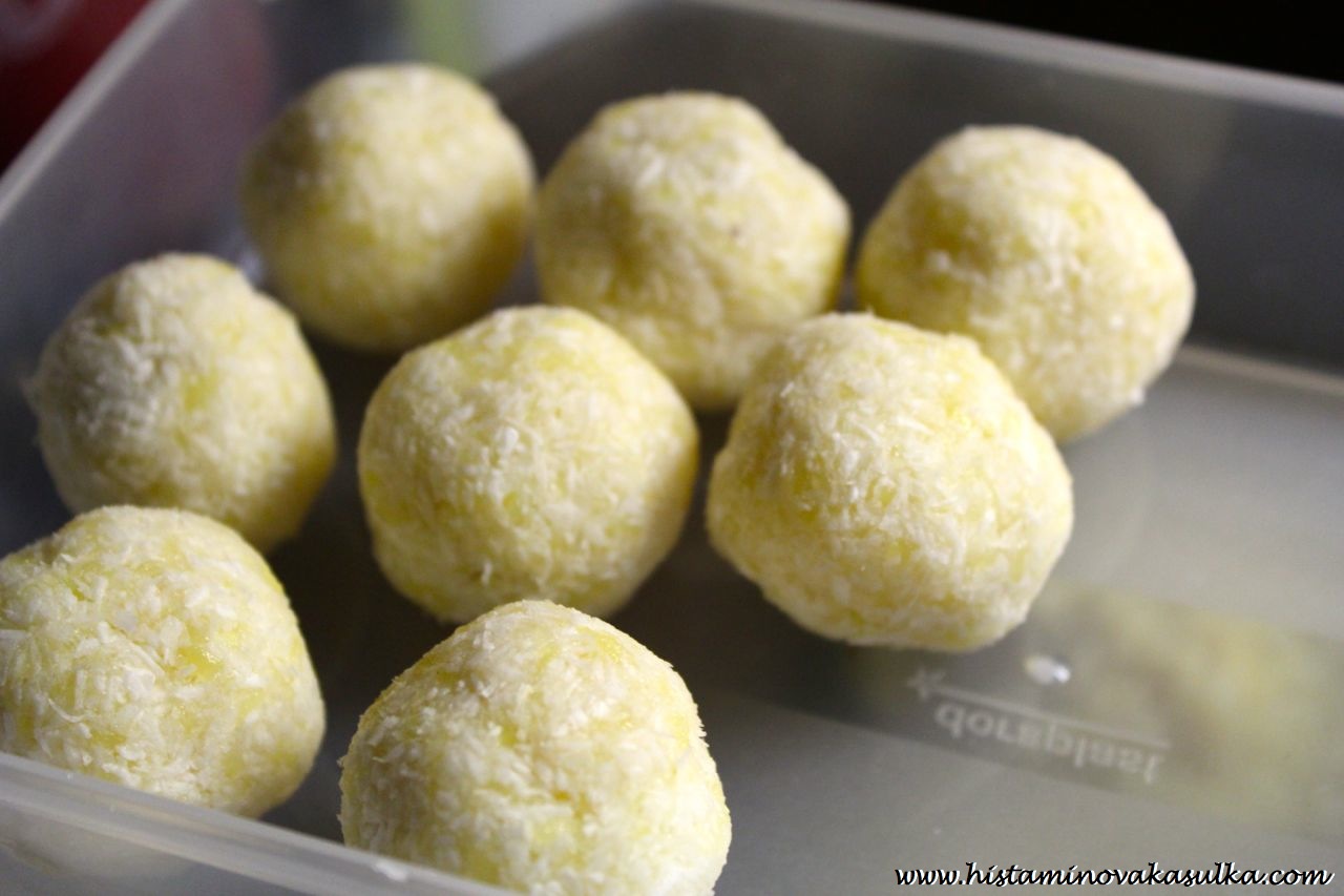Obalíme v mletém kokosu a necháme v lednici do druhého dne odležet (pak 100% brambory neucítíte). Dobrou chuť.