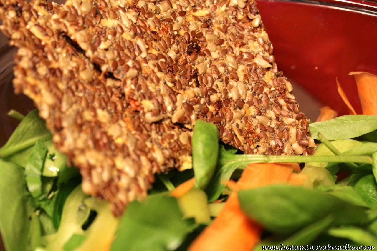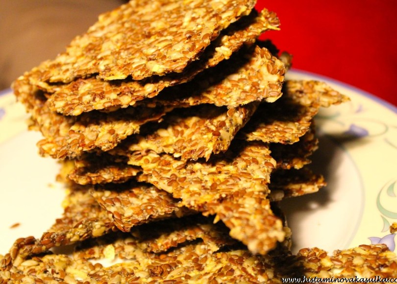Lněné semínko si naložíme spolu s chia semínkem do vody. Vody přidejte tak, aby byla semínka lehce pod hladinou. Po pár hodinách případně přidejte (po lžících, tak aby hmota stále držela „slizem“ u sebe). Nechte namáčet přes noc. Přidejte celá nebo nahrubo nasekaná slunečnicová semínka (když přidáte celá, zachováte více živin), na jemno nasekaná sušená rajčata, na drobno nasekanou cibuli, prolisovaný česnek a koření. Dobře promíchejte.