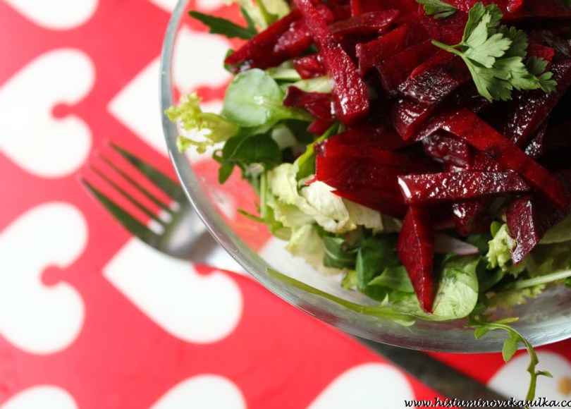 Teď něco strašně jednoduchého:) A to jen proto, že je červená řepa super zdravá a měla by se konzumovat ve své syrové podobě, aby si uchovala své antioxidanty. Pokud vám jen tak nejede, zkuste si ji trochu načesnekovat, naolejovat a uvidíte, jak vám bude dobře křupat v salátu. Mimochodem, olivový olej má protizánětlivé účinky, stejně jako česnek i antioxidant řepa. Dopřejte svému tělu opravdovou dávku antioxidantů!
