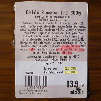 A to jsou jen taková běžná data. Možná si říkáte, že trochu toho vitamínu C není na škodu, ale proč bychom vlastně měli kupovat něco tak jednoduchého v upravené podobě? Když si budete doma připravovat kvásek a péct vlastní chléb, určitě tam nebudete sypat dextrózu, lepek navíc, nebo třeba sóju. Rozum prostě zůstává občas stát. Některé chleby pak obsahují třeba propionan vápenatý, který byl zařazen do skupiny alergenů a látek nevhodných pro děti. Bohužel některé bezlepkové výrobky na tom nejsou o moc lépe a měli byste si dávat pozor i při jejich nákupu!