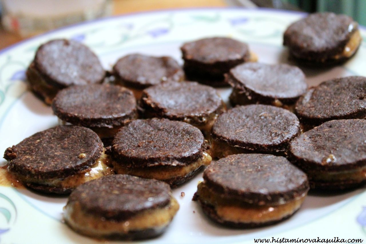 Poté trochu krému mázneme na sušenku a přiklopíme druhou, dáme opět zatuhnout do lednice.