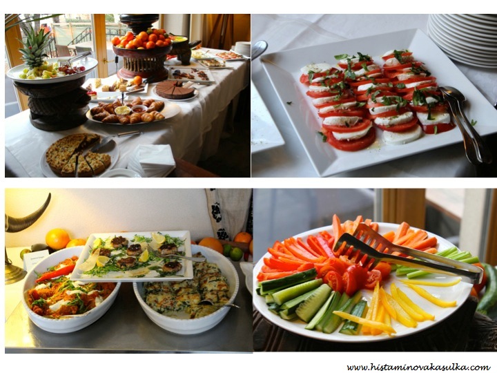 Pak nám bylo přesně popsáno, kde se co nachází a já jsem dostala přesné reference, kde je lepek, kde jsou rajčata či jiné ingredience, které nemůžu. Musím říct, že mě trošinku zamrzelo, že jsem nemohla ochutnat uuuuuplně všechno, ale proto jsem sebou měla ještě jedny náhradní ústa, díky nímž vám můžu zprostředkovat i chuťové zážitky, které jsem nezažila (a také mám jistotu, že že mé dojmy nejsou zkresleny mými návyky).