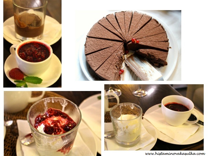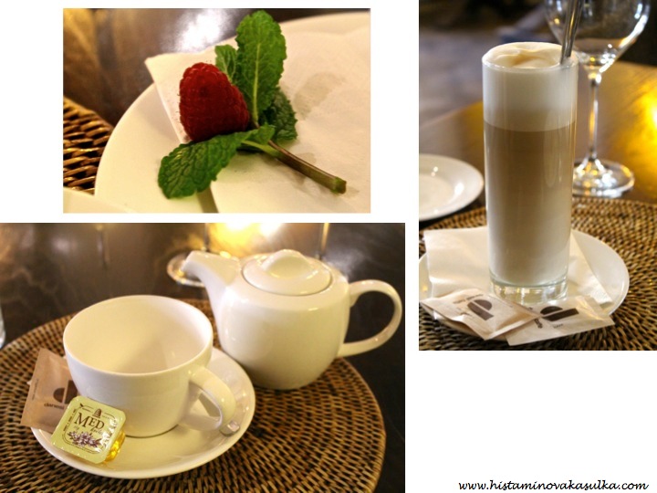Čokoládový dort vypadal luxusně na první pohled. Jelikož v kuchyni došla bezlepková mouka (byli ochotni mi udělat special palačinky), nabídli mi velmi mile jako náhradu domácí zmrzlinu. Třeba s horkými malinami. Na to se prostě nedá říct nic jiného než ANO! K tomu čajík z čerstvé máty či třeba luxusní cafe latte (hádejte, co jsem měla já:)).
