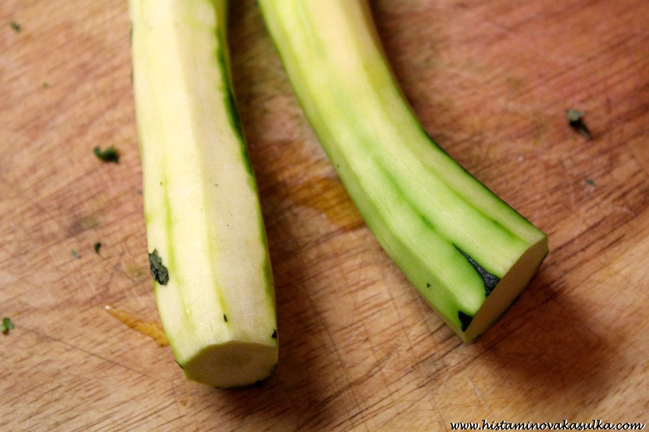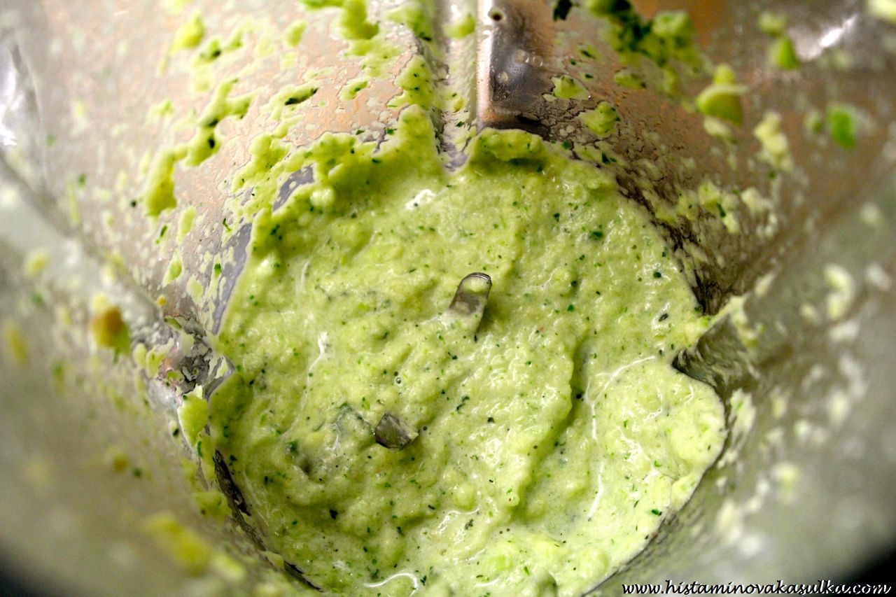 Cuketky oloupeme (vybíráme opravdu mladé, aby byly sladké) a dáme do mixéru společně se špetkou soli, tahini a 1-2 lžičkami bazalkového oleje/pesta, které jsme si připravili.