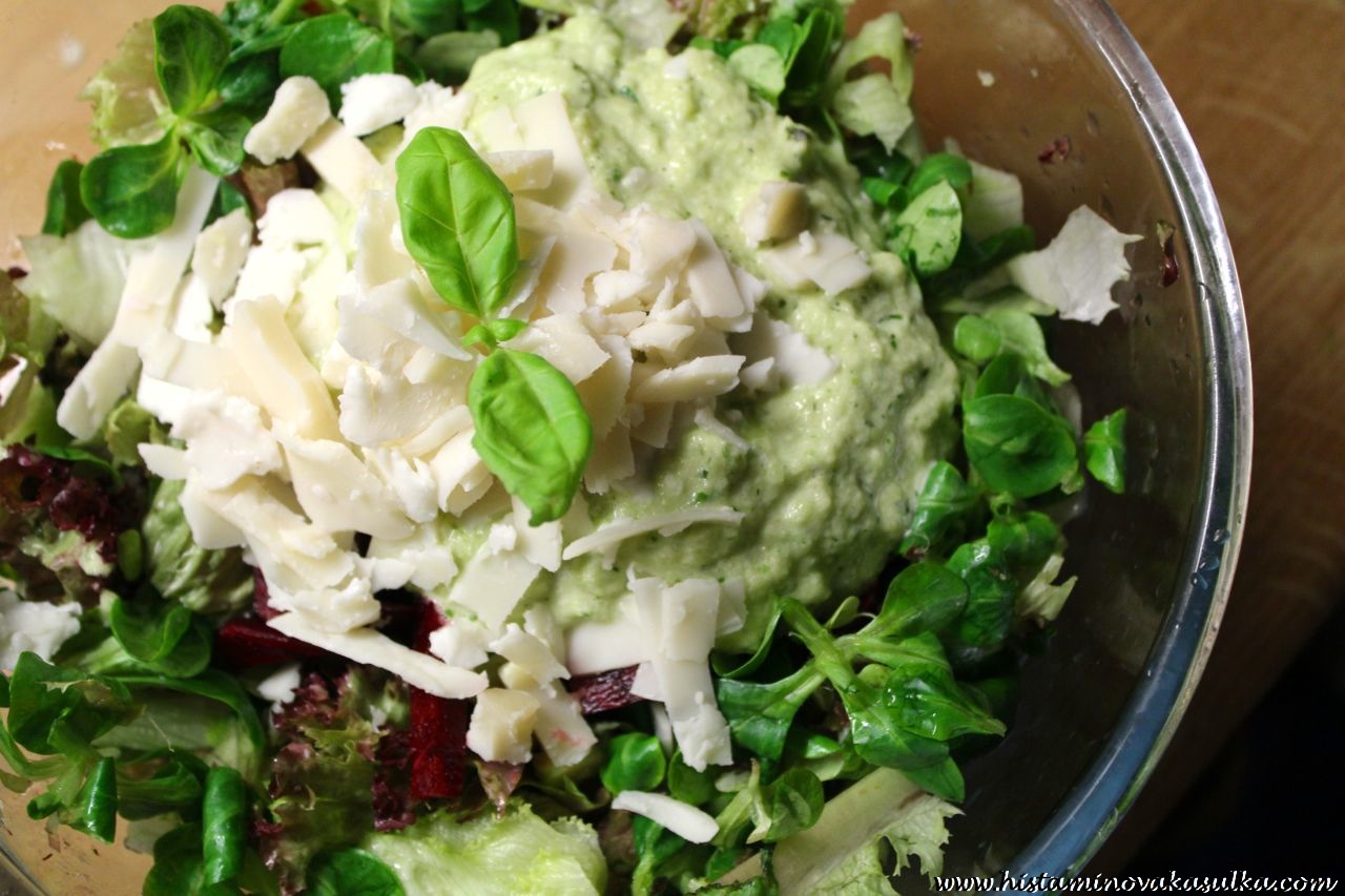 Tak sluníčko už nám svítí a můžeme krásně nabírat nejen energii, ale také spoustu vitamínu D. Nejlepším zdrojem dalších vitamínů je sama příroda – hurá tedy na pořádnou porci salátu. Když přidáte prospěšné koření a čerstvý kozí sýr, určitě si i pochutnáte. Doporučuji zkusit sehnat čerstvý sýr u farmářů, protože vás mile překvapí, že chuť je naprosto jiná než z obchodu. Čerstvý sýr nemá dokonce žádnou výraznou „pachuť“, která lidi od kozího a ovčího mléka odrazuje (tento mi chutí připomněl spíše hrudkovitý tvaroh, do salátu ideální).