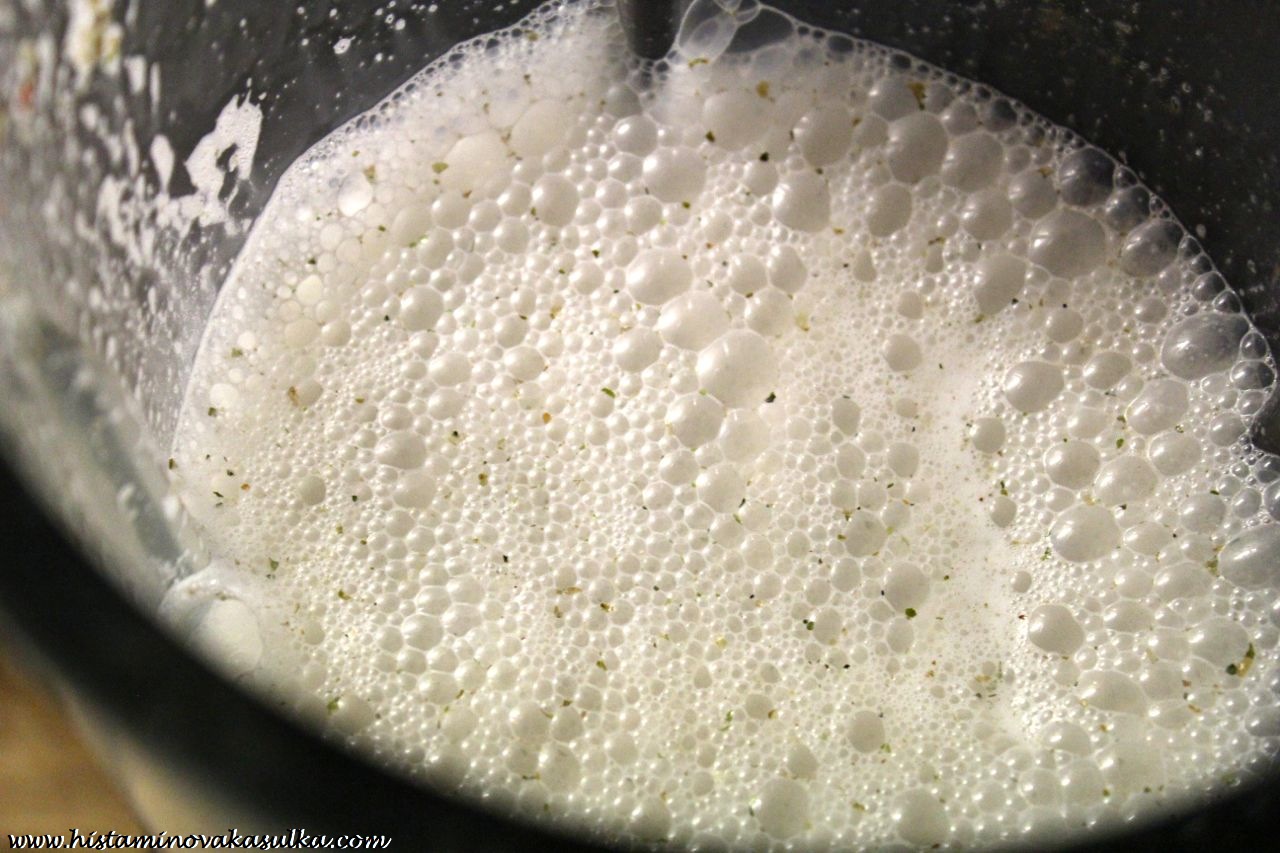 S přípravou mléka jsem začala den dopředu – do vody jsem si naložila neloupaná konopná semínka. Ty jsem na druhý den propláchla a v čisté vodě (cca 0,5 litru vody na 50 g semínek) jsem vše řádně rozmixovala. IMG_9754Scedila jsem přes sítko. Pokud chcete extra bílé a extra čisté mléko, doporučuji plátenko. Jinak můžete přecedit před jemné sítko, nechat pak mléko ještě chvíli postát a oddělí se vám zbylý prach, který si sedne na dno. Konopné mléko plné proritzánětlivých omega a vitamínů je hotové. IMG_9755
