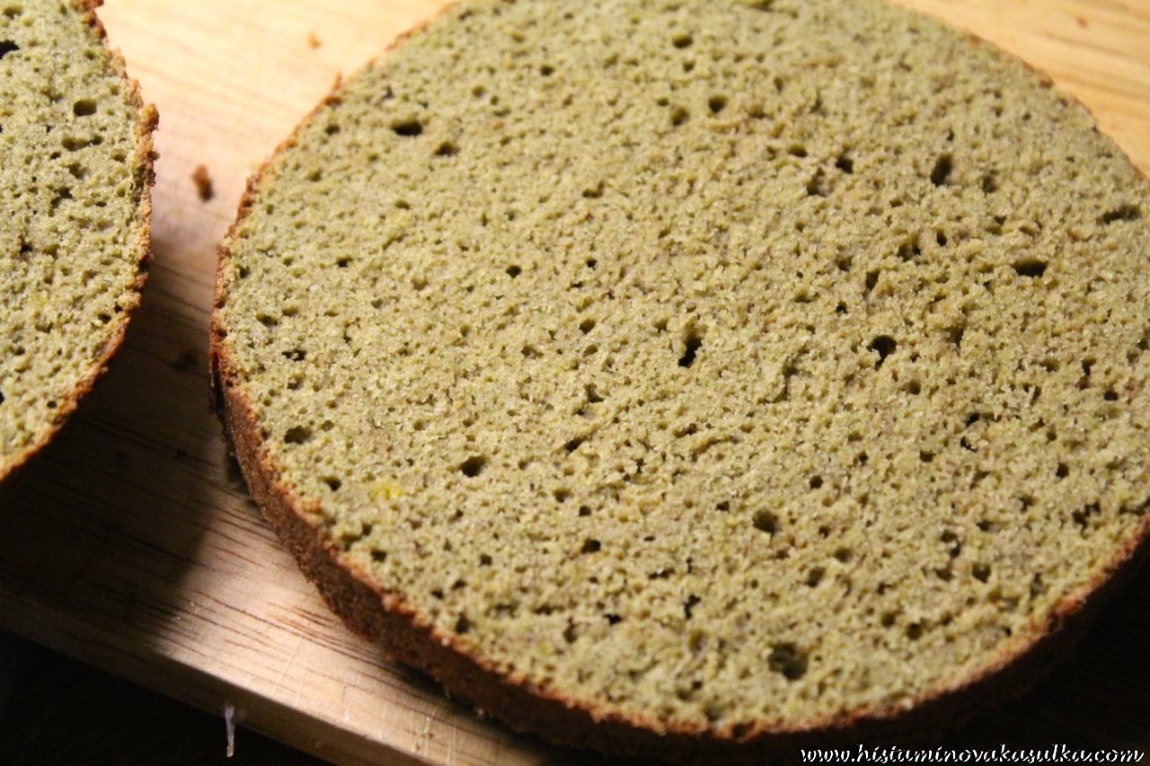 Mouku smícháme s práškem do pečiva, cukrem a chia moukou. Vaječné bílky si našleháme se špetkou soli a pak do pěny zašleháme matcha prášek. Přidáme opatrně rozkvedlané žloutky a směs přidáme k suché směsi. Vzniklé těsto přesuneme do formy a pečeme při 170°C asi 15 minut. Necháme vychladnout.IMG_9873 IMG_9889