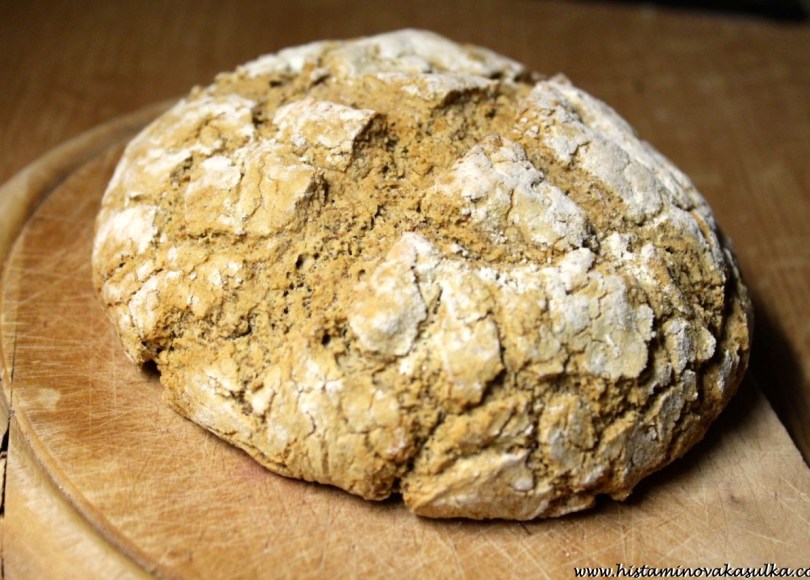 Tentokrát jsem se rozhodla vyzkoušet jogurtový chléb. Vycházela jsem z klasických návodů na irský sodový chléb, jen si pohrála s moukami. Mléčným se sice většinou vyhýbám, ale zjistila jsem, že Hollandia začala na svém bílém jogurtu uvádět mléčné kultury, které byly použity na přípravu. Podle všeho by zrovna tyto kmeny neměly být nebezpečné, co se produkce histaminu týče. Vysvětluje to, proč se v knize Histamine Intolerance:Histamine and Seasickness jogurty uvádějí jako bezpečné a bez obsahu histaminu (zřejmě se v Rakousku jogurty dělají jen s bezpečnými kulturami). Těším se, že jednoho dne se dočkáme stejného postupu i u dalších výrobců. Navíc je tento jogurt hustší a celkově má velmi dobrou reputaci.