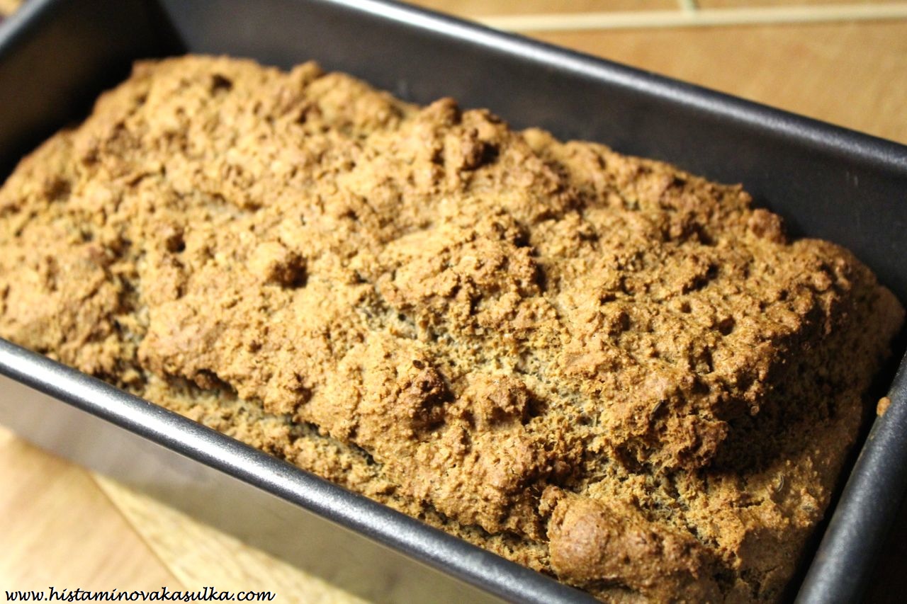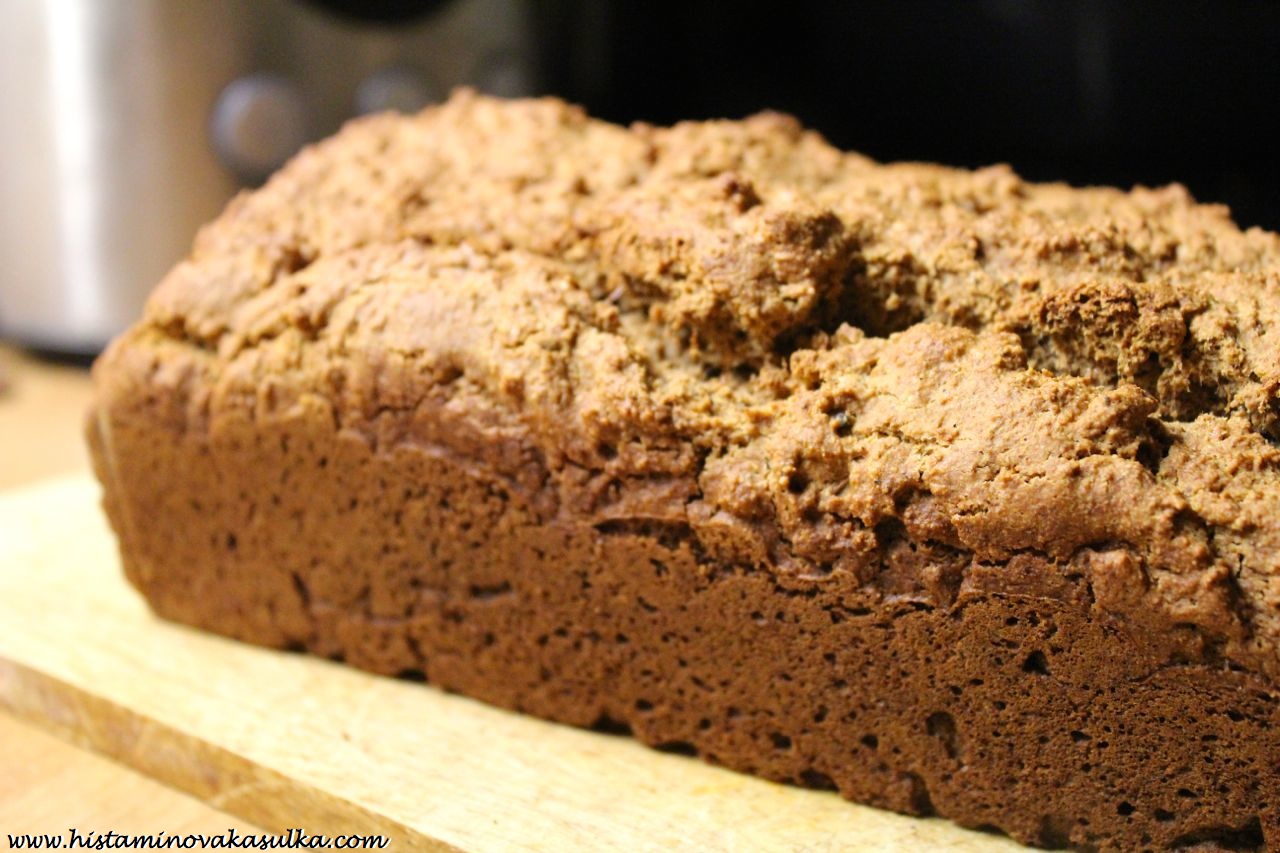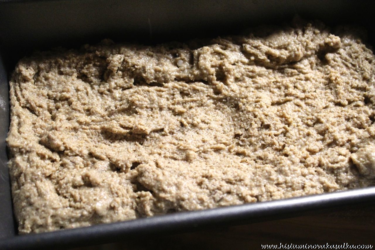 Troubu předehřejte na 170°C. V míse smíchejte rozpuštěný kokosový olej, vejce, mléko, ocet a med (nezapomeňte vejce a mléko vytáhnout předem z lednice, aby vše mělo pokojovou teplotu, jinak vám bude tuhnout kokosový olej). V druhé míse smíchejte suché ingredience a přidejte k nim tekutou směs. Míchejte opatrně (nesmí se přemíchat, začnou se již postupně tvořit bubliny). Přesuňte do předem vymazané chlebové formy a pečte cca 60 minut (dokud párátko nevyjde z centra čisté).