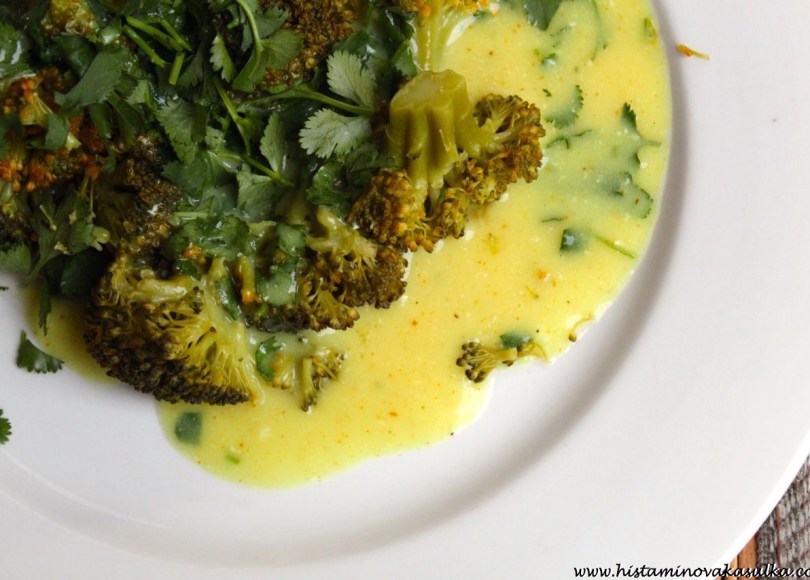 Po povaření kokosového mléka citrónovou trávu vyjmeme. Přidáme sůl a kari koření (dle své chuti), zamícháme a nakonec vmícháme tapiokový škrob rozpuštěný v trošce teplé vody. Krém nám ihned zhoustne. Přidáme na drobno nasekaný koriandr a odstavíme z ohně. Mezitím by se nám měla dodělat brokolice. Servírujeme ideálně posypané extra dávkou čerstvého koriandru. Labužníci mohou přidat na kostičky nakrájený čerstvý ovčí sýr. Dobrou chuť.