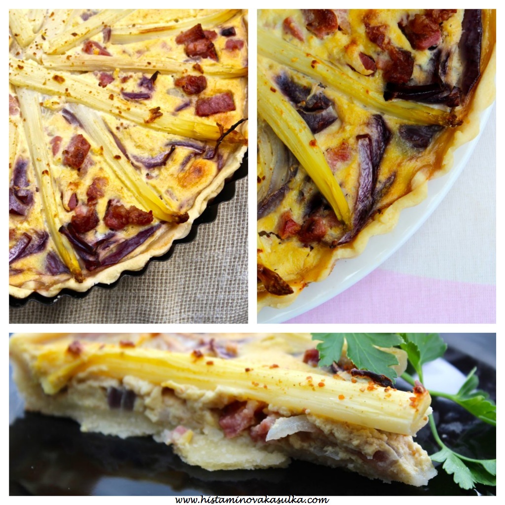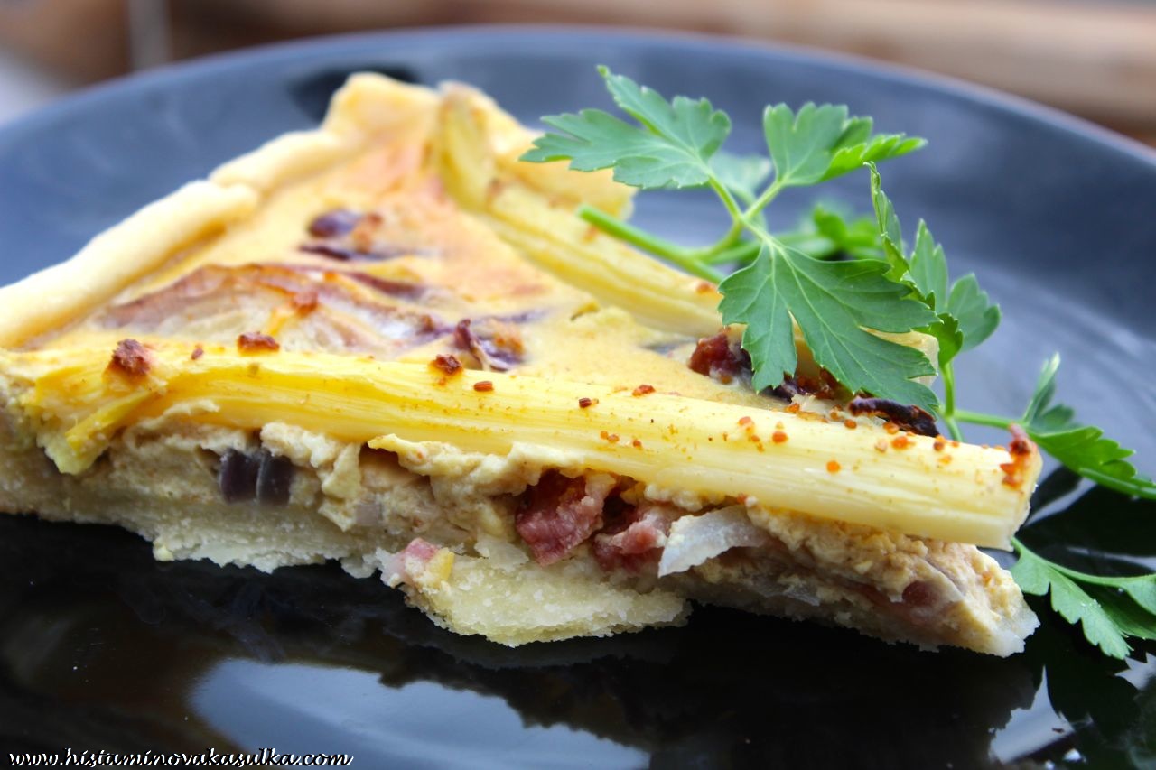 Páj, páj, samý páj… Moc se omlouvám všem, kdo toto slovo nemají rádi, ale mně se prostě moc a moc líbí. Ne že bych měla něco proti českému koláči, ale prostě si koláč spojuji se sladkou chutí. Quiche mám jednoznačně spojený se slanou chutí, zato páj…. je takový neutrální. A že máme tu chřestovou sezónu, byla by škoda jeden receptík nepřihodit. No dobře, možná to nebudou tou sezónou, ale prostě se u mě v lednici ocitl balíček bio bílého chřestu. A vedle něj si to tak klidně válela maďarská uzená kýta (ano, to nevidíte moc často, uzeniny se rozhodně na začátek diety nedoporučují a svůj kousek můžete nechat uzeniny „prostý“, ale jak jinak donutit chlapy jíst slané koláče), dávala na obdiv své ladné křivky a bylo jasné, že to chřest nenechává chladným. Úplně jsem viděla, jak paní kýta mrká na pana chřesta. A tak jsem se rozhodla spojit je v jedno za pomocí rozmarýnového pouta. A páj byl na světě.