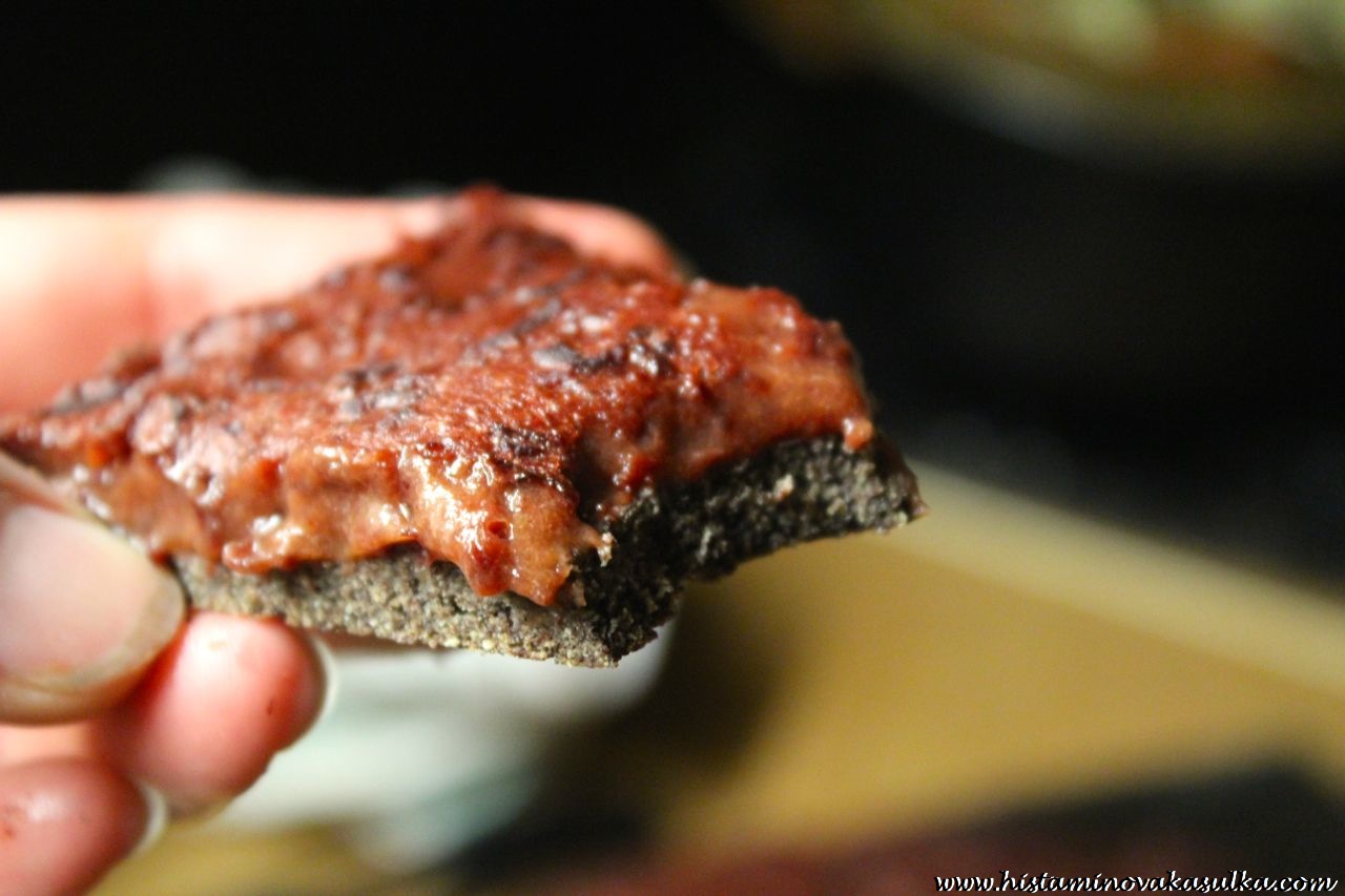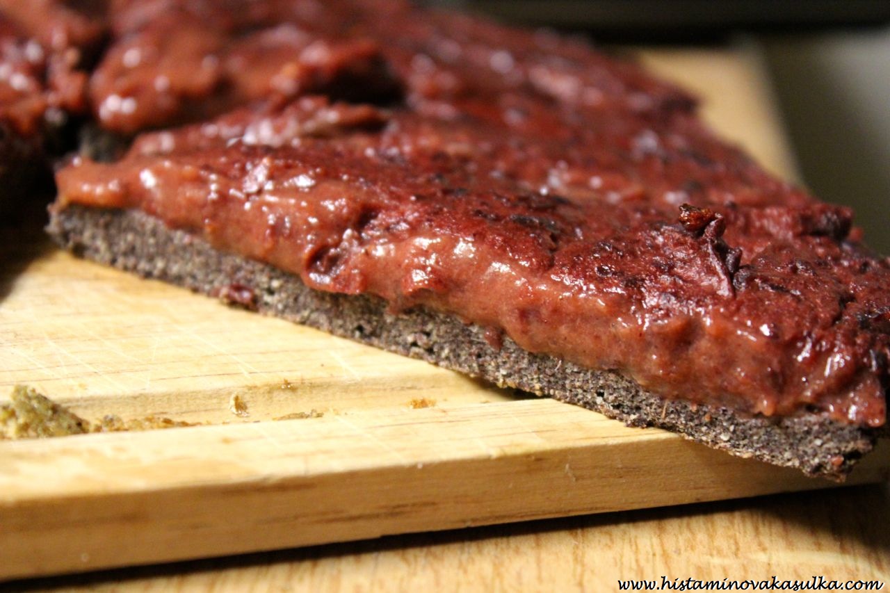 Smícháme si makovou mouku s kokosovou a chia. Přidáme panely a rozšlehaná vejce. Těsto rozetřeme do dortové formy a dáme na 10 minut péct. Mezitím si slijeme švestky a dáme do mixéru. Já jsem měla zavařené bez konzervantů, jen s lžičkou třtinového cukru. Rozmixujeme na hladkou hmotu a dosladíme dle chuti. Korpus vytáhneme z trouby, necháme pár minut vychladnout a přelijeme švestkovým přelivem, tak aby byla cca 0,5 – 1 cm vrstva. Dáme do trouby péct na dalších 25-30 minut. Švestková vrstva se nám trochu zatáhne a vytvoří jakoby „škraloup“. Necháme vychladnout na mřížce a pak nakrájíme. Švestková vrstva bude krásně držet na pizze, ale bude jemná, vláčná a velmi svěží. Dobrou chuť. IMG_0005