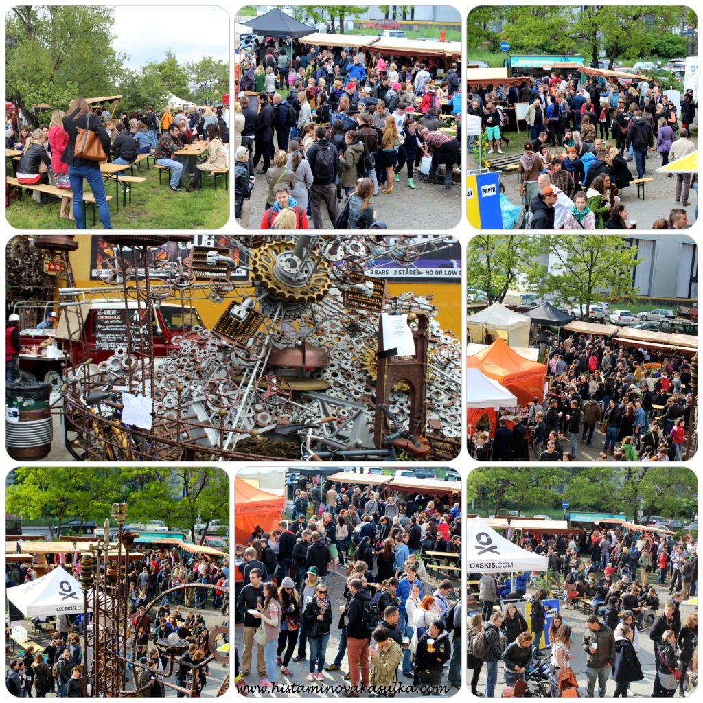 Když jsem před pár týdny dostala pozvánku na Street Food Festival, bylo jasno, co budu v ten den dělat. Foodie kultura v Česku? Amatéři, domácí kuchtíci i profíci na jednom místě, vše pod otevřeným nebem a za doprovodu příjemné muziky? Tomu přece nelze odolat. A tak jsem dobila baterky ve foťáku, připravila svůj vybraný jazýček, vyhladověla žaludek (nejen ten svůj) a vyrazila s ochutnávači směr pražské Holešovice.kolaz davy lidi