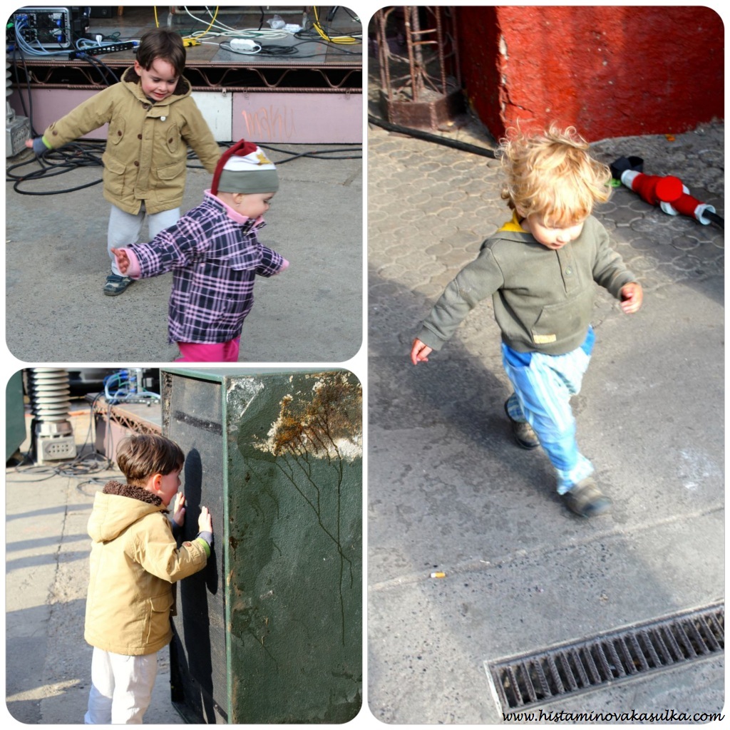 Na začátek bych uvedla, že festival po poledni připomínal spíše akci „Z fronty do fronty“, ale jelikož jsem byla po zkušenosti z předchozích akcí podobného typu vyzbrojena pevnými nervy a dobrou společností, nemohla mě tato skutečnost vůbec rozhodit:) Buďme k sobě férový – očekávalo se to! Fronty jsou v takovém případě vlastně docela dobrá zpráva – lidé mají zájem o nové jídlo, nové zážitky a podporují food festivaly. Někdo by mohl namítnout, že je to jen špatnou organizací, ale těch lidí se před Cross klubem otočilo opravdu spousta. No, kdo by také nechtěl ochutnat některé vybrané specialitky. A tak se lidé shromažďovali, povídali, jedli, pili a v pozadí roztáčel hvězdná kola jeden z DJs. Odpoledne také vystoupil Mário Bihári a musím říct, že jim to hrálo dobře. Roztančili snad všechny děti, které se v okolí pohybovaly (aneb když se v mládí naučíš pařit u bedny, ve stáří jako když najdeš) .kolaz deti