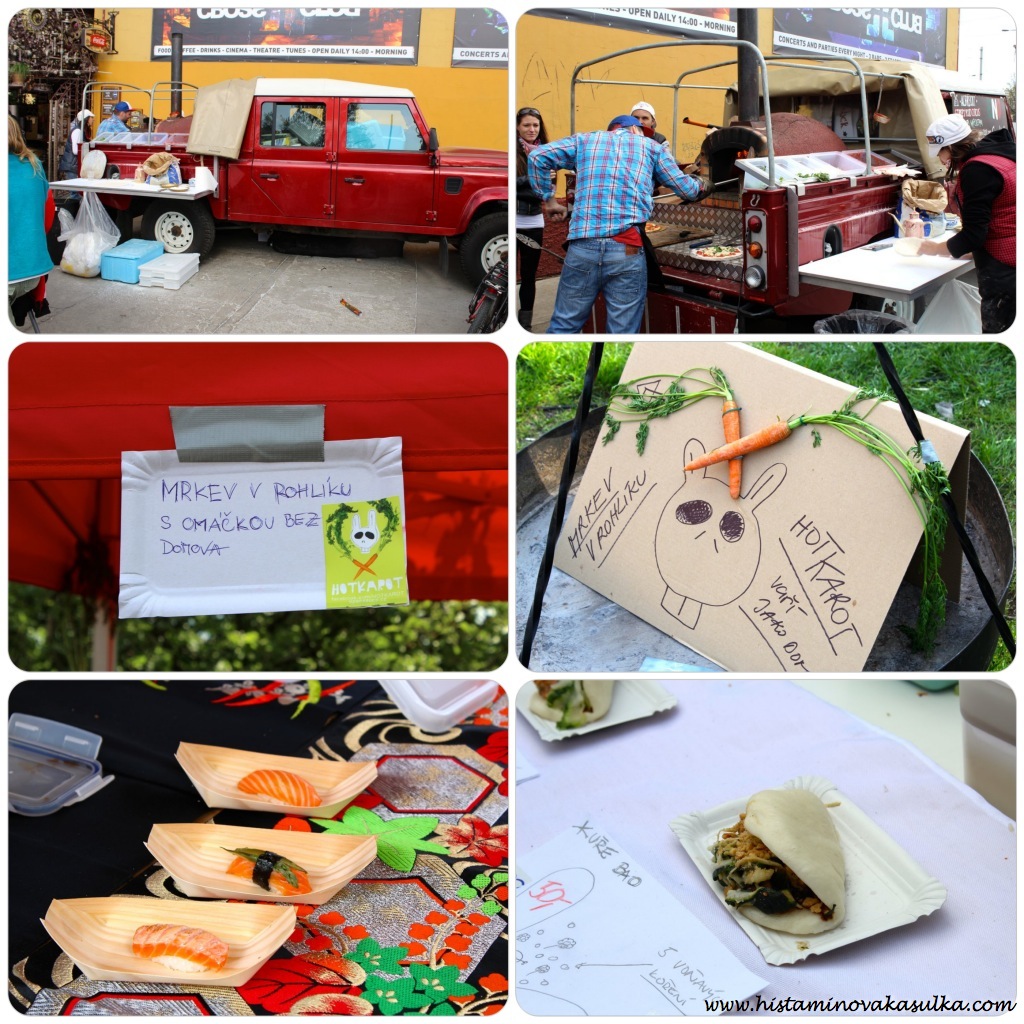 To v tomto směru byly mnohem originálnější Albrecht Street Food Circus. Až nebudete vědět, co s takovým mega velkým Land Roverem, natáhněte dozadu pícku a vyjeďte dělat pizzu! Pizza vypadala luxusně, ale bohužel ani ta se neshoduje s mým protilepkovým žaludkem. Každopádně posádka tohoto týmu si akci náležitě užívala (samozřejmě až po tom, co dopekla zásoby:)). Kuchařky bez domova a Hotkarot nabídli naprosto originální věc, a to vařenou mrkev v rohlíku. K tomu jste si mohli vybrat jednu z „omáček“ či pomazánek, která celému rohlíku dodala unikátní chuť (nej byla prý ta medová). Máme rádi originální projekty. Bistro 8, které mám osobně moc ráda, se na festivalu představilo s bochánky (s originálním popisem, co vše v bochánku najdete. A milovníci sushi si mohli ochutnat dobrůtku od Sushiqueen (a zároveň se mohli kouknout na přípravu:))