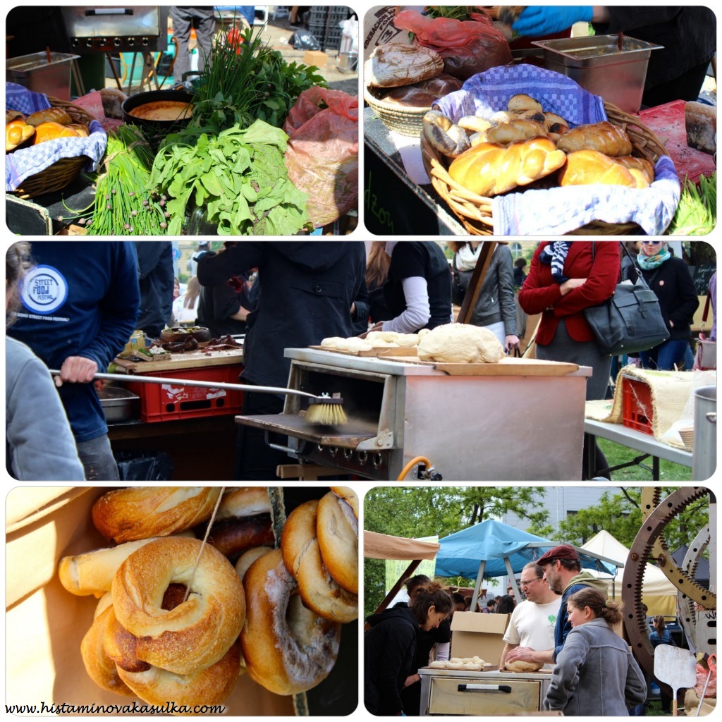 V rámci festivalu byly na programu také přednášky, třeba jste se mohli dozvědět více o projektu PecemPecen.cz (a také ochutnat kváskový chléb). Nechyběla ani burza kuchařek (prostě vyber si svou kuchařku a vydraž ji:)) A pokud vás zajímá kompostování, mohli jste se zeptat KOKOZY. Pokud vás zajímá, jak pěstovat ve městě, jaké jsou moderní kompostovací technologie či zakládání městských zahrad, kukněte na jejich stránky.kolaz programA občas také vykouklo slunce omrknout situaci, a tak ani nevadilo, že jste občas dostali nějaký ten políček, popílek z ohně do očí či nájezd kočárkem na nohu. A teď už honem na to jídlo!