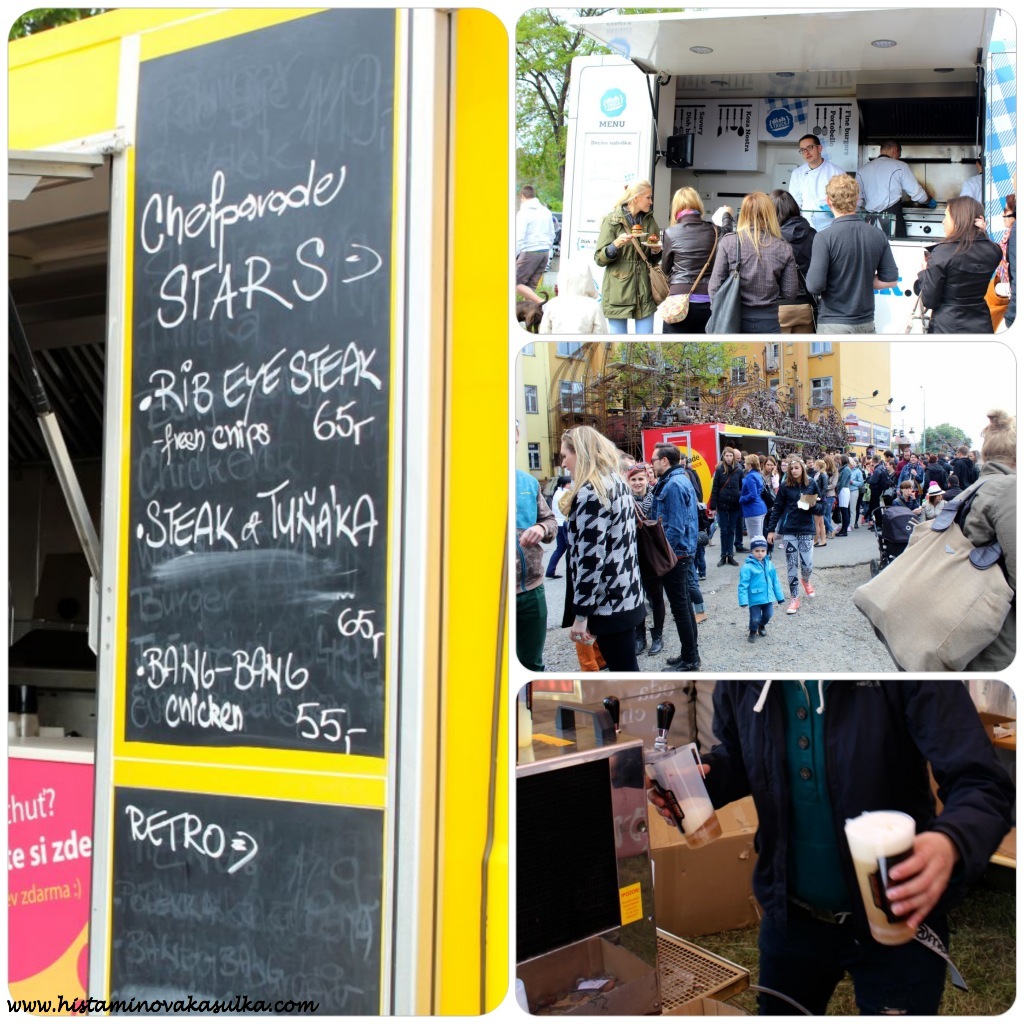 Hned kousek od Dreamu stál DISH truck, který se honosil neuvěřitelně dlouhou frontou po celou dobu (a ovčím burgerem!)…jakmile fronta zmizela, bylo jasné, že burgery došly, a tak si to auto odfrčelo už kolem páté hodiny (ale nezoufejte, na Dish si můžete v Praze skočit kdykoli). Se svým truckem zavítal také Chefparade, který mimo jiné dovezl tuňáka (kdo by neholdoval kravičkám).kolaz trucky