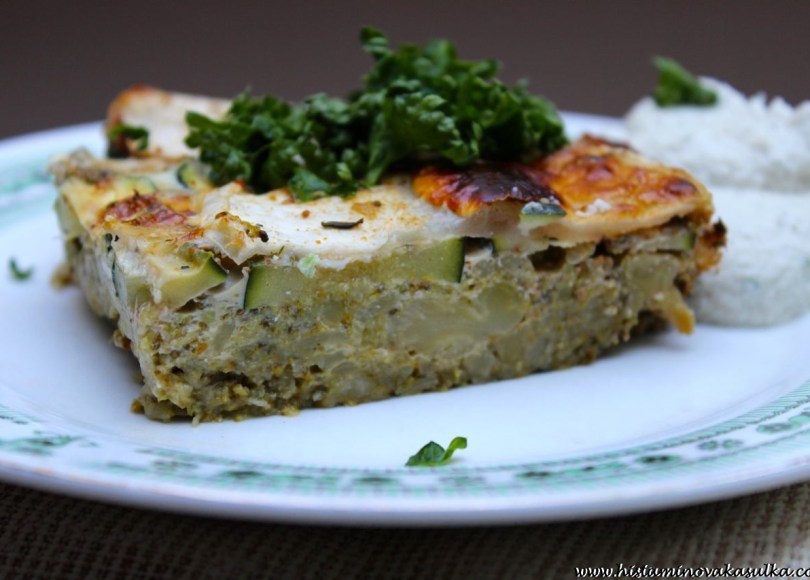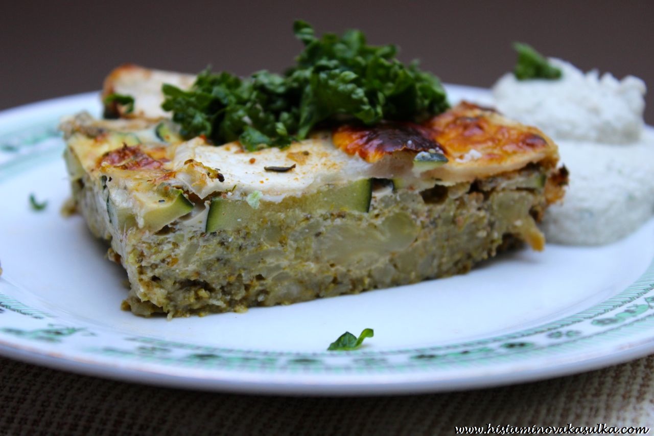 A kdo tvrdí, že musaka nelze udělat bez masa a lilku? Nebo rajčat? No dobře, už to asi není originál řecká musaka, ale vzhledem k tomu, že ji připravují i v dalších zemích, můžeme přimhouřit trošku očko. Název jsem zvolila dle, toho, že mi prostě musaku připomíná. Vzpomínám si, jak jsem jako dítě dostala na dovolené u moře kostku něčeho na talíř a byly v tom těstoviny i brambory zároveň. Pro mne v té době tak šokující „punk“, že jsem musaku odmítala jíst. Dnes si tedy zapečeme trochu té protizánětlivé brokolice s vodnicí a cuketkou. Když k tomu přidáme jednu „raw“, tedy syrovou a živou „zakysanku“ (nebo takový super dip i na jinou zeleninu), mám super oběd nebo večeři se spoustou živin a hlavně vlákniny. Jablečný ocet, který patří při HIT mezi ty tolerovanější, můžete klidně zkusit nahradit za citrónovu šťávu nebo šťávu z kyselých zelených jablek. IMG_0350