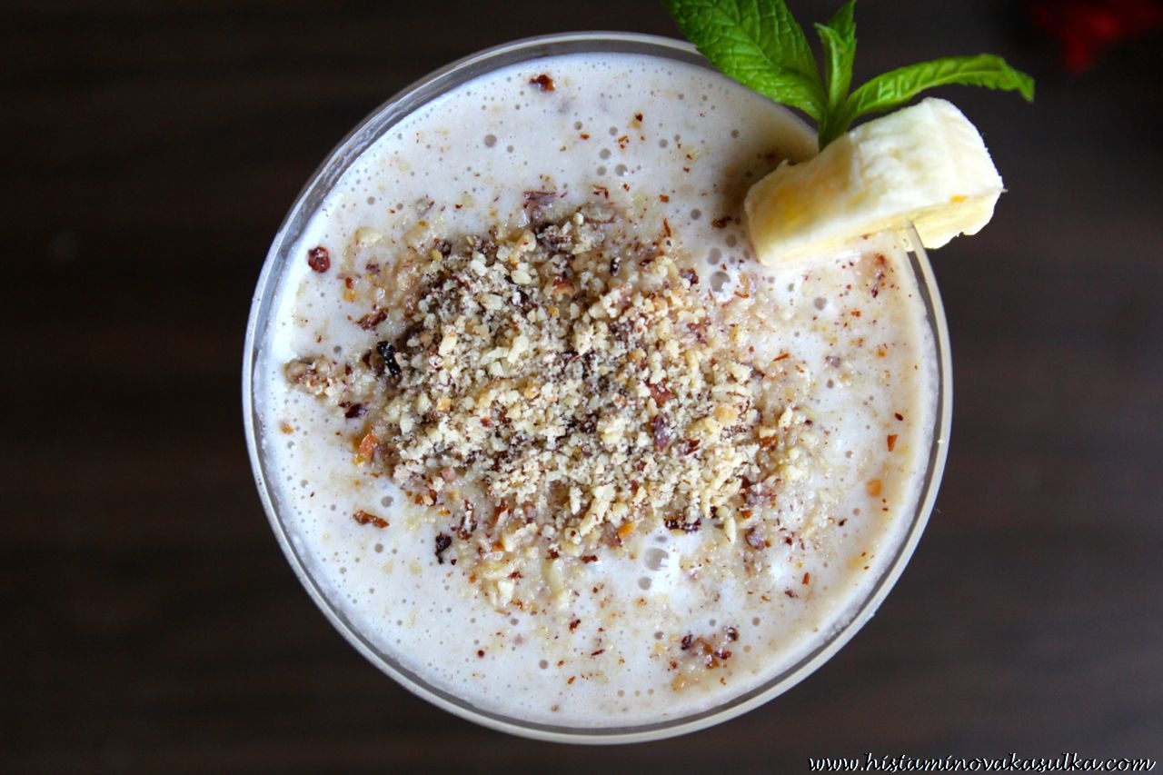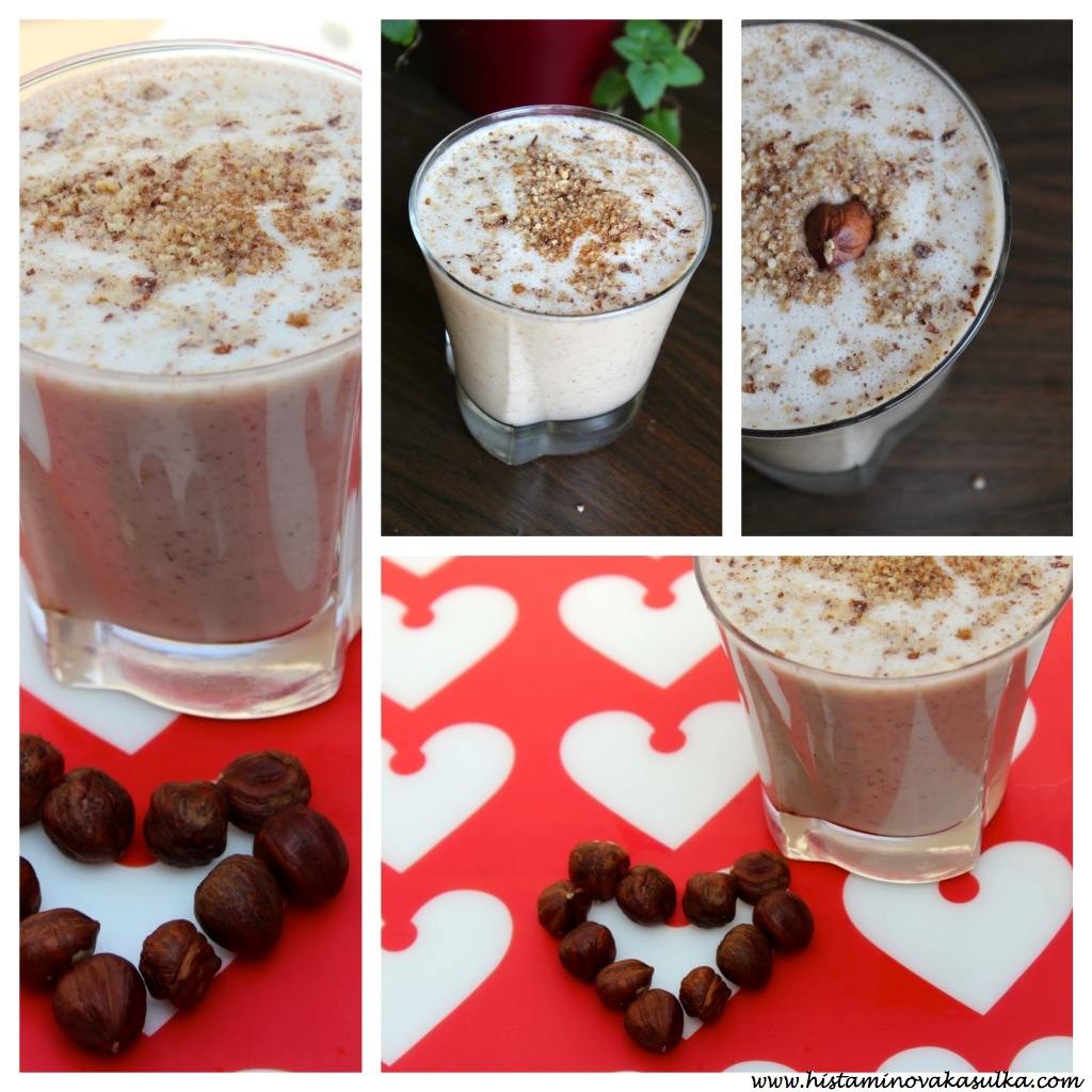 Pro toto smoothie budeme používat lískooříškové mléko, které se připraví naprosto stejně jako mandlové mléko či jiná rostlinná mléka. Ve spojení s lískooříškovým olejem získáme úžasnou chuť, přičemž doplníme spoustu protizánětlivých látek z banánů, chia semínek (omega-3 mastné kyseliny!), případně maca kořene, minerály z lucumy či protizánětlivé látky z kakaa.