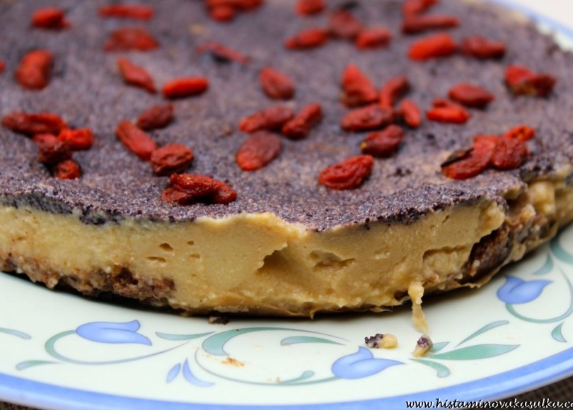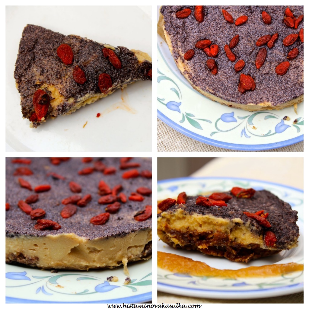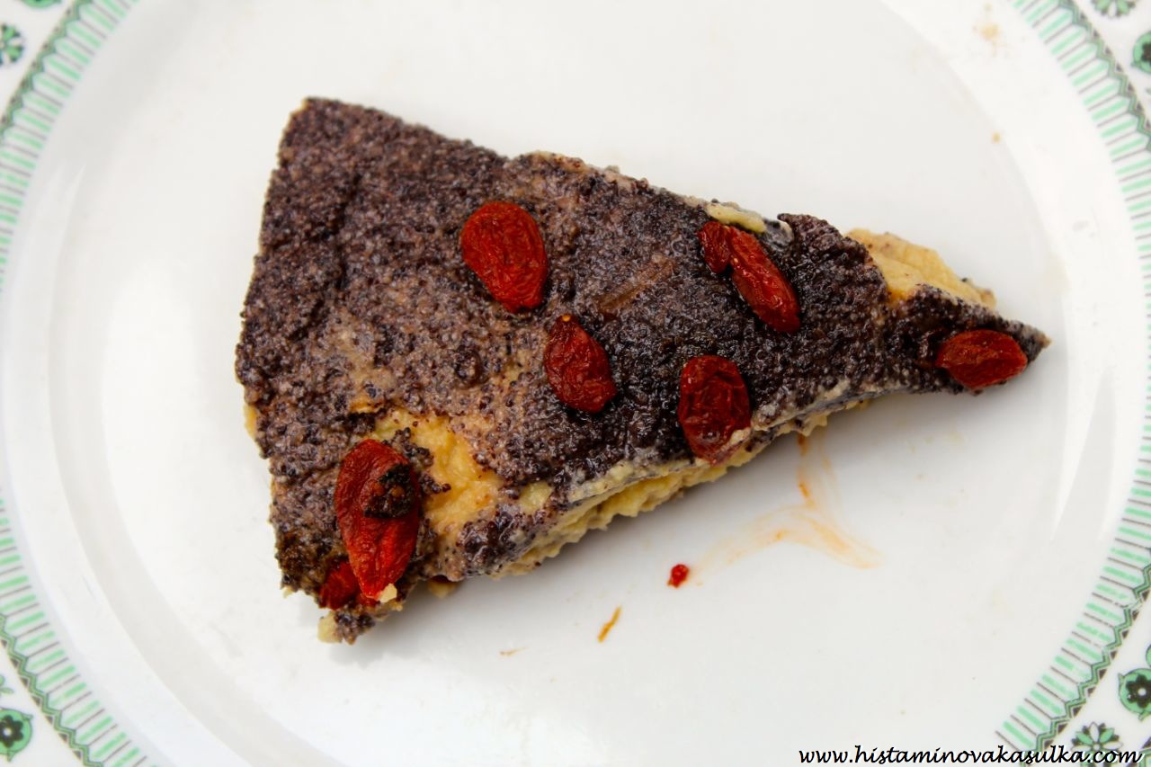Mák rozemeleme a smícháme s rozmixovaným banánem. Přimícháme trochu daltového sirupu a limetkové šťávy a rozetřeme na jablečnou vrstvu. Poklademe goji a dáme do lednice přes noc zatuhnout. Dobrou chuť.