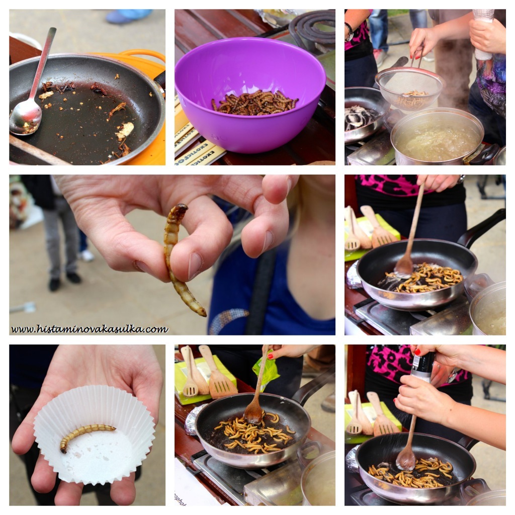 Pokud by vás příval toho jídla a sledování indonéských tanců unavili, mohli jste se osvěžit pořádnou kávou. Krom tradičních pressíček byla možnost ochutnat kávu z netradiční přípravy. Za 30 Kč jste si mohli dát skvělou překapávanou kávu. No a na závěr něco pro silné nátury:)) Jak jsem zmínila v příspěvku nahoře, na festivalu se připravovali také hmyzáci. Kdo nechtěl třeba smaženou kobylku, mohl zkouknout přípravu červíků a pak také ochutnat. My jsme zvolili tradičního na másle se solí, abychom si užili tu chuť. Nutno říct, že když prostě potlačíte předsudky, není na tom vůbec nic špatného:))) Nezapomínejte! Potrava budoucnosti!