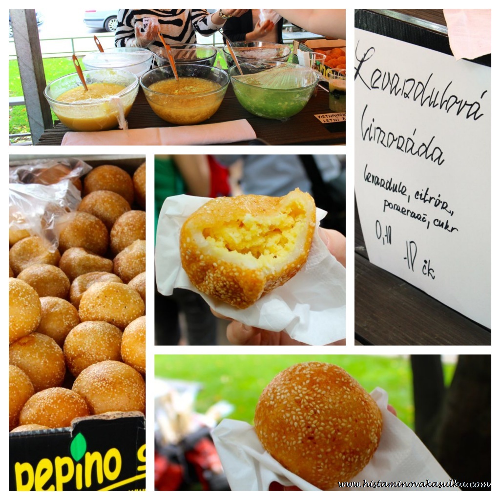 Pokud byste stále měli chuť na sladké, tak jednoznačně doporučuji asijskou specialitku vyrobenou ze sladké lepivé rýžové mouky, která je obalena v sezamu a osmažena. Vnitřek je prázdný, lépe řečeno vyplněný náplní, v tomto případě se jednalo o rýži a sóju, často se používá také fazolová pasta (1 ks větší hodně sytící koule za 40 Kč). K tomu jste si mohli dát vietnamský letní čas, což jsem pochopila je směs různých ingrediencí včetně želé a ovoce a kdoví čeho:)) U stejného stánku pak byla možnost ochutnat levandulovou limonádu (0,1 dl za 10 Kč).