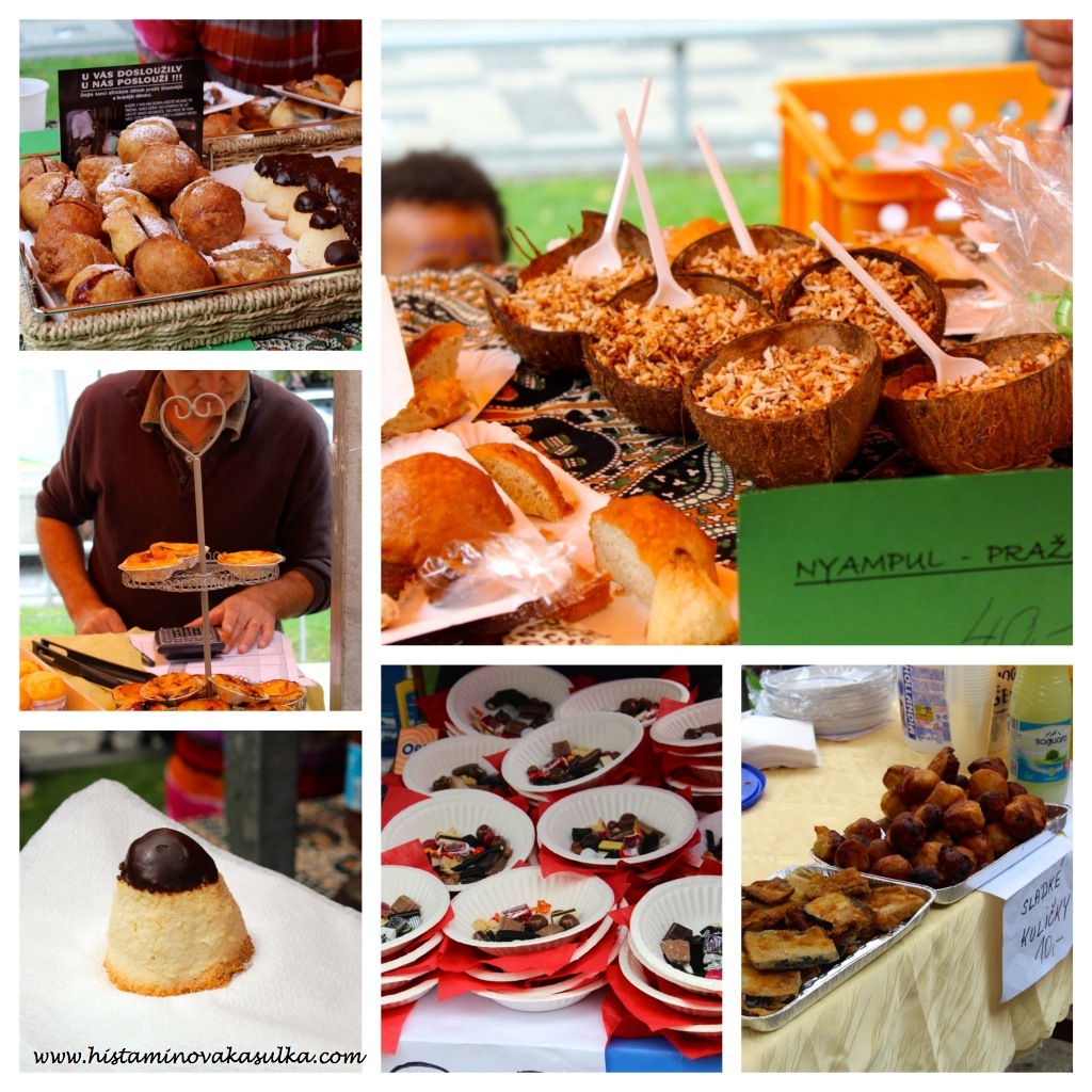 Cestou k Uganda stánku jste mohli potkat spoustu dalších z Afrického kontinentu. V Africa Mama nabídli velmi zajímavé ryby a brambory (a špízy, které nevím, z čeho byly). A také palmové pivo. Na sladkost jste se mohli stavit v Kongo stánku, kde měli třeba i bezlepkovou kokosku (která velmi připomínala naši kokosku, ceny od 20 výše, či třeba 5 kč za karamelový bonbon). Zbytek ze sladkostí měl bohužel mouku, stejně jako sladké koule u protějšího stánku. Mezi tyto stánky se přimotal Island, který nabídl ochutnávku islandských sladkostí (80 kč za tácek) anebo sušené ryby.