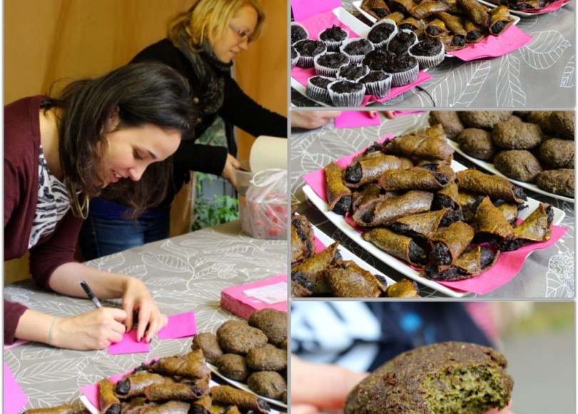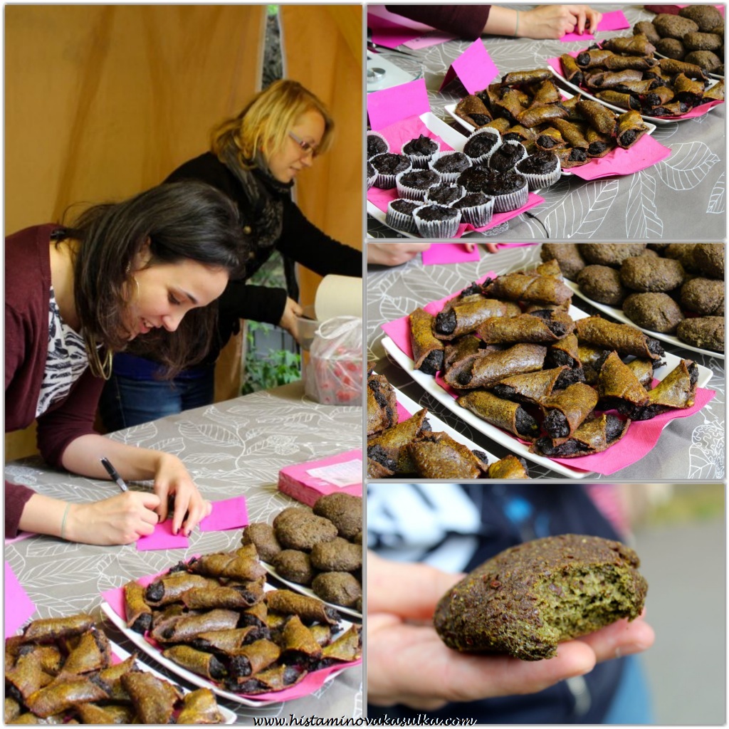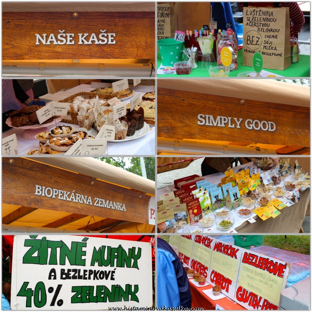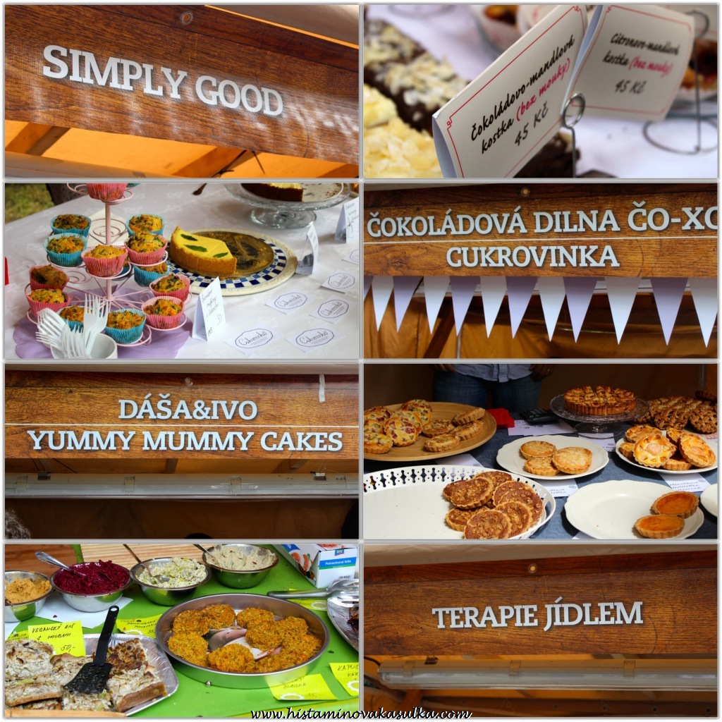 Uf, nacpaní už jen z těch obrázků? Tak je na čase trochu odlehčit. Abyste si nemysleli, že byl festival o přecpávání tučnými zákusky a vymazlenými koláči. Kdo by chtěl něco lehčího, „Naše kaše“ dovezli mimo jiné svou luštěninovou pomazánku (bez sóji, mléka, lepku, chemie). Biopekárna Zemanka nabídla své celozrnné i bezlepkové sušenky a kdo by hledal slané a sladké mufiny, mohl se jich dočkat ve zdravější žitné verzi nebo také úplně bezlepkové verzi (cizrnová mouka:)).