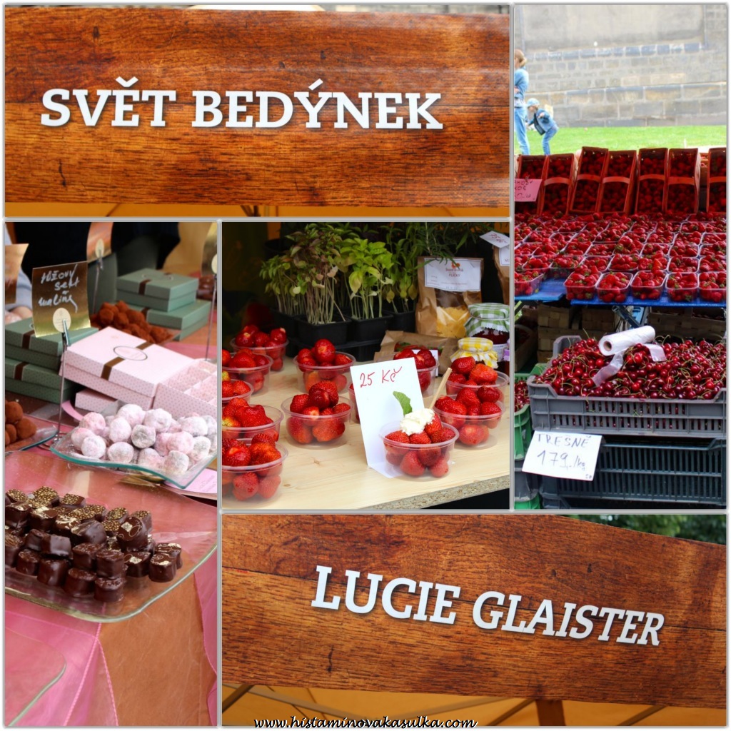 A pak si dát třeba lehčí dezert v podobě čerstvých jahůdek se šlehačkou od Fresh bedýnek. Současně probíhali také „farmářské trhy“, tak si každý mohl nakoupit i torchu toho svěžího ovoce domů. A kdo by stále nebyl spokojen a potřeboval maličkou tečku na závěr, některá z čokoládových pralinek Lucie Glaister musela uspokojit i nejnáročnější jedlíky.