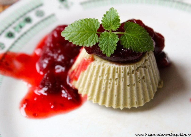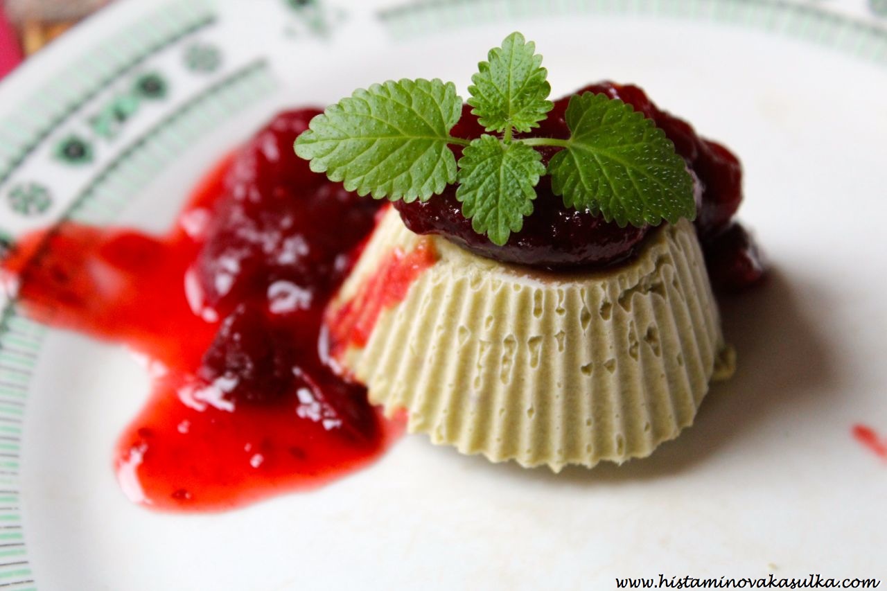 Matcha kokosové dortíčky s brusinkovou omáčkou