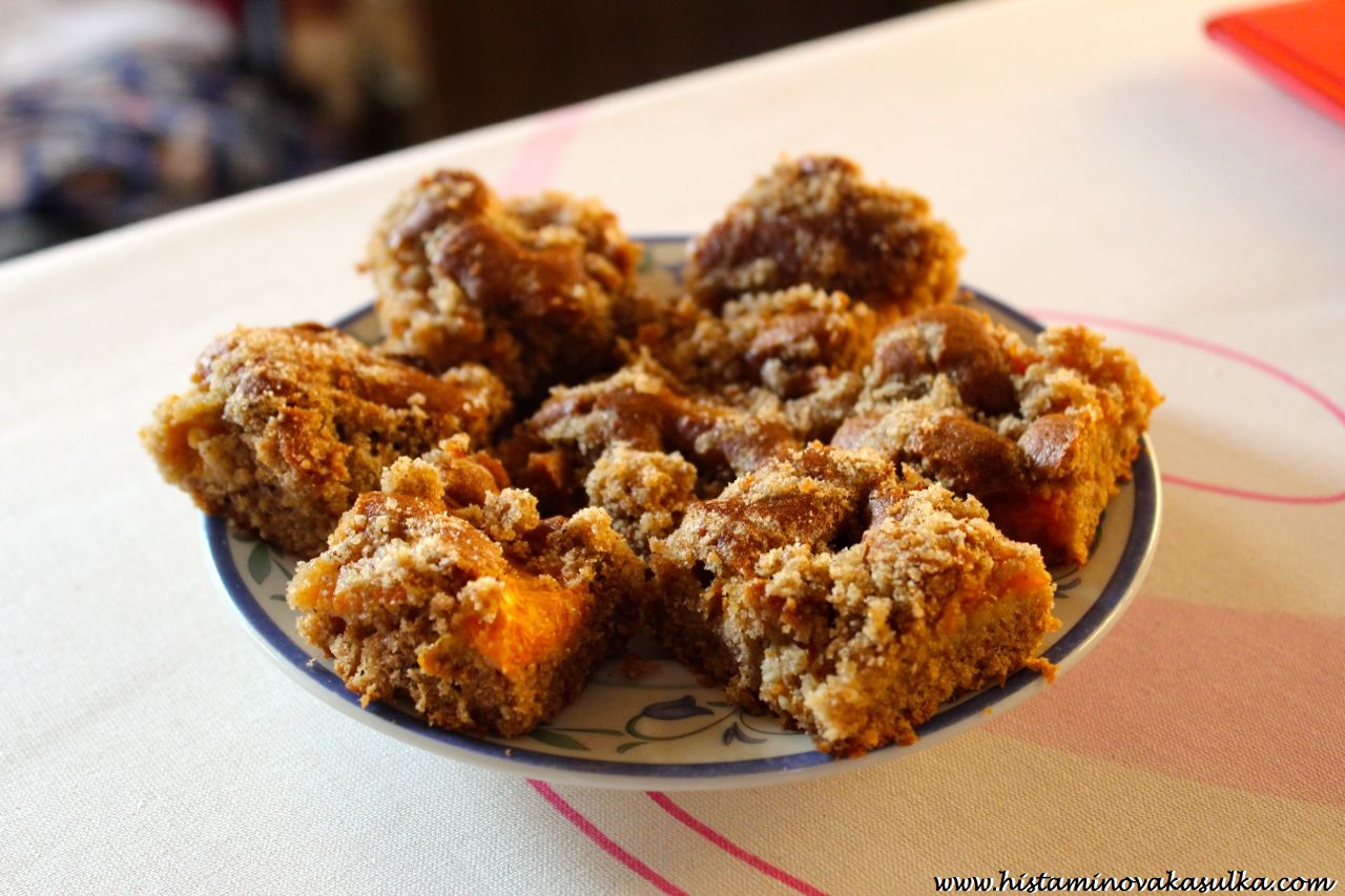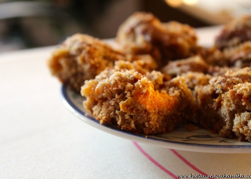 Někdy je pro mě pečení boj a vymýšlím přímo na místě (aneb když ti to padne do oka, tak to tam přidej, třeba to vyjde), musím pak většinou co nejdříve změny a ingredience zapsat, jinak jsem v záplavě gramů a hrnků ztracená. Končí to často cáry papírů (ke všemu umazanými od pyré, vajec, oleje a kdoví čeho ještě), které pak zpětně luštím. A tak se snažím hledat efektivnější způsob, který by mi umožnil fungovat bez otírání rukou, připisování a luštění hyeroglyfů. Samozřejmě si moc a moc ráda nechám od vás poradit! A tak zatímco budu přemýšlet o té buchtě, co jsem našla fotky ve foťáku, kam jsem mohla založit receptůůůru, podělím se o recept na koláč s kaštanovou moukou, který má oříškovou chuť i bez oříšků, spoustu vlákniny, minerálů z melasy a kokosového oleje a zdravé meruňky!