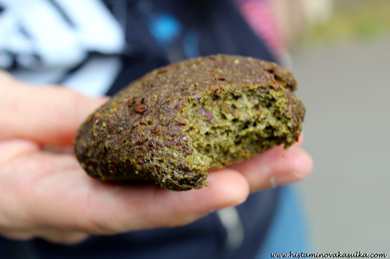 Jsou úžasné. A vždy se povedou. Je jedno, jakou mouku použijete, Beátiny houstičky se vám vždy vyvedou. Potřebujete psylium (vláknina, super pro naše střeva), vodu, sůl, lněné semínko a mouku. Nabobtnat, uplácat, dát upéct, nechat vychladnout, konzumovat. Dají se skvěle přenášet, vydrží měkké i na cestách a zasytí. Rozhodně doporučuji. Jo, a když použijete dýňovou mouku, slovo „kozí bobky“ bude patřit do vašeho slovníku (přestože mi bylo vysvětleno, že kozí bobky nejsou zelené:)))).
